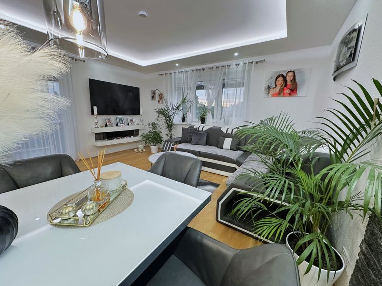 Der offene Wohn- und Essbereich lädt dazu ein, 🥂 gesellige Abende mit Freunden und Familie zu verbringen, während der angrenzende Balkon 🌳 Ihnen die Möglichkeit bietet, die frische Luft und die idyllische Umgebung zu genießen.