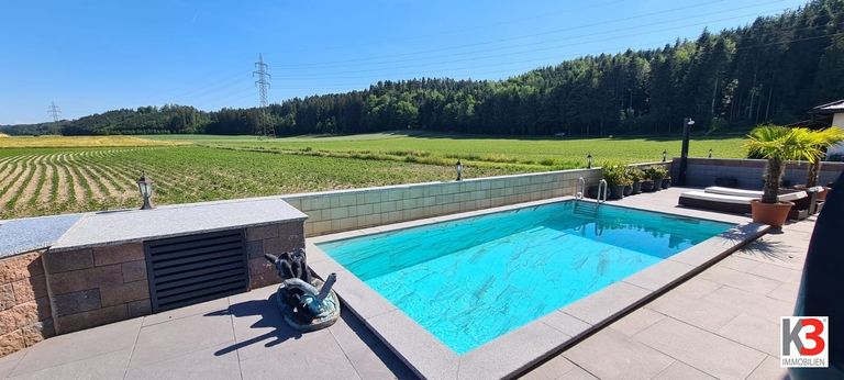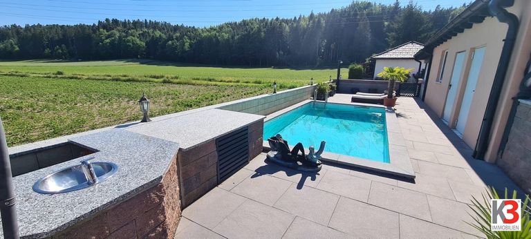 K3 präsentiert Wohnung mit Pool, Teich, Einliegerwohnung und Doppelcarport in absoluter Ruhelage