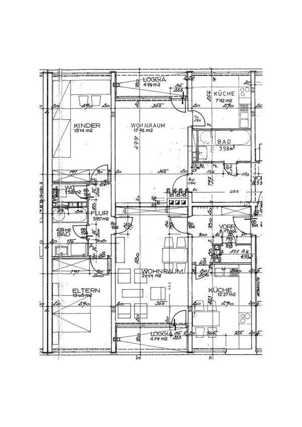Die Wohnung besteht aus 2 Schlafzimmern, einem Wohnzimmer, Bad, WC, der Essküche, einer Speis, Vorraum und Loggia.