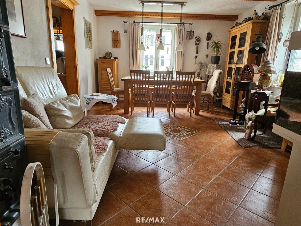 Geheizt wird mit einer Gas-Zentralheizung und einem gemütlichen Kachelofen im Wohnzimmer und Vorraum. Zusätzlich wäre auch noch ein Holzofen in der Küche sowie Solar am Dach.