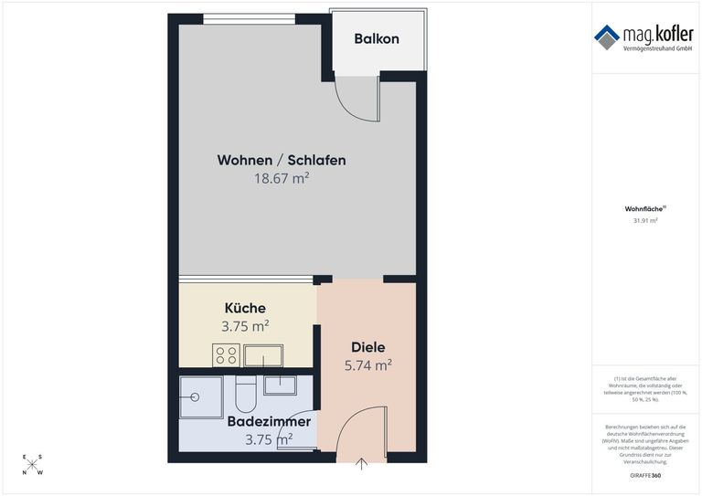 gesamte Wohnnutzfläche: ca. 31,91 m²