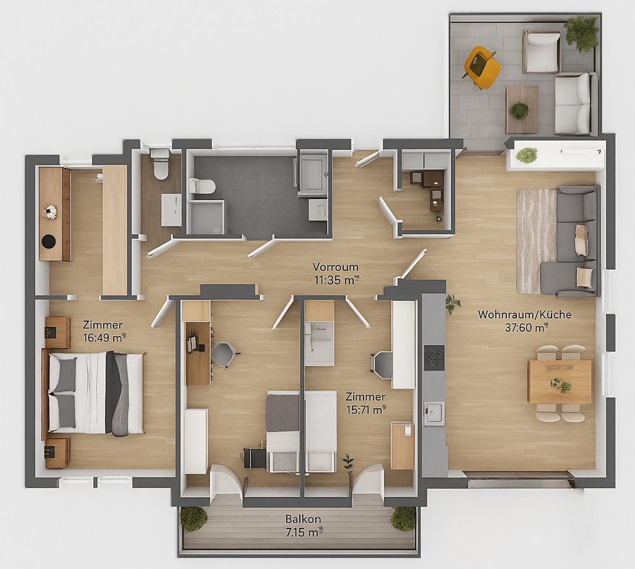 • 3 Schlafzimmer (davon eines mit Schrankraum)