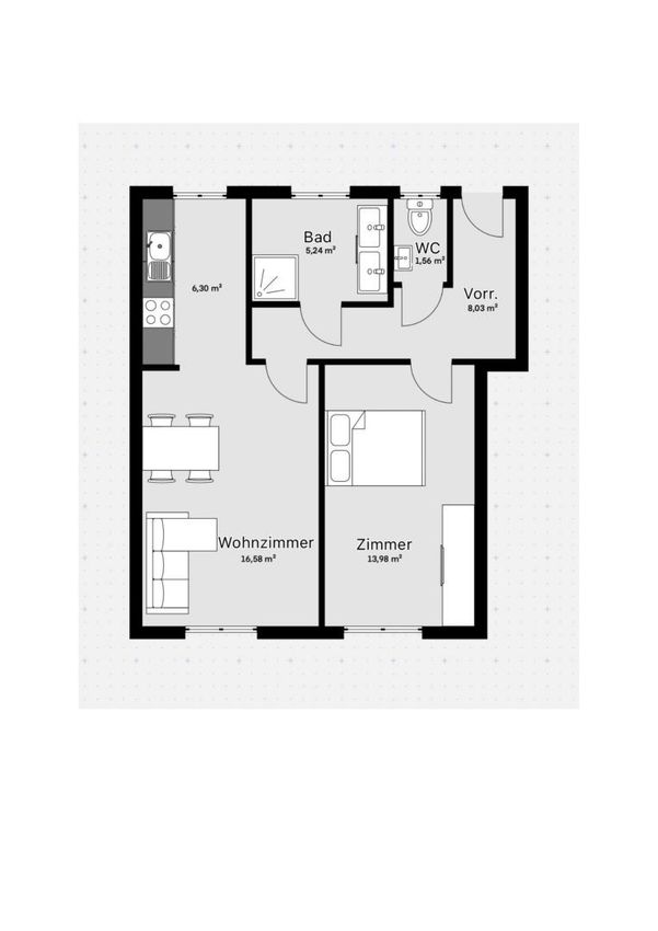 Diese gemütliche Wohnung im 1. Obergeschoss mit rund 52 m² Wohnfläche ist ideal für Singles oder Paare, oder als Startwohnung für alle, die ein behagliches Zuhause mit Wohlfühlatmosphäre suchen. Sie vereint kompakte Größe mit intelligentem Raumkonzept und bietet alles, was modernes Wohnen ausmacht.