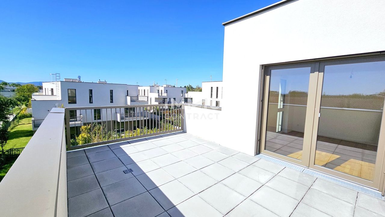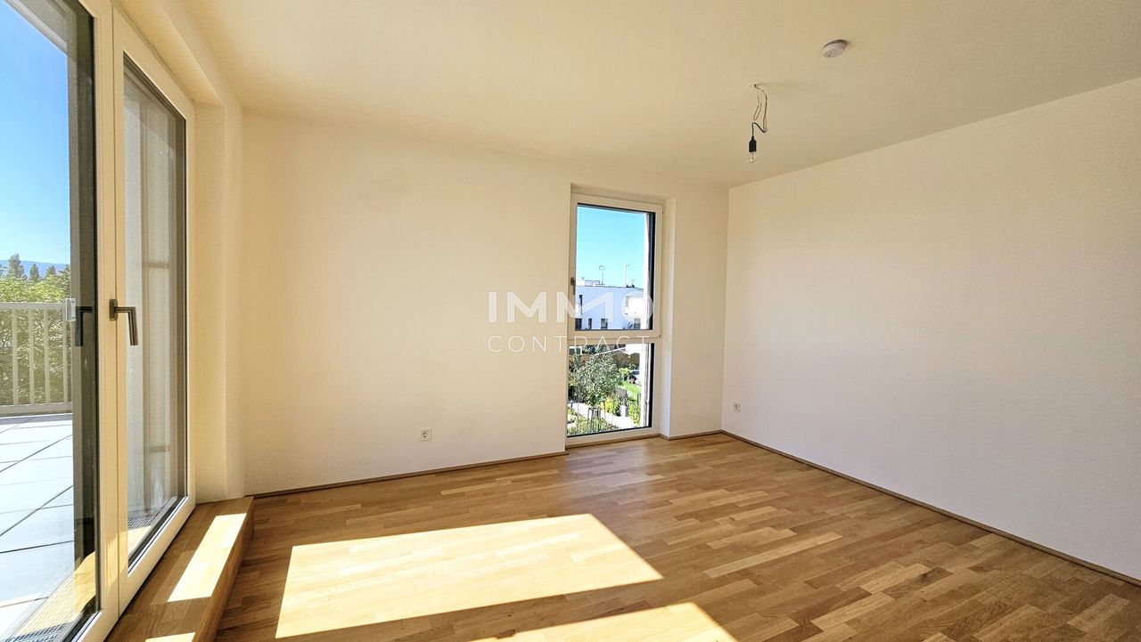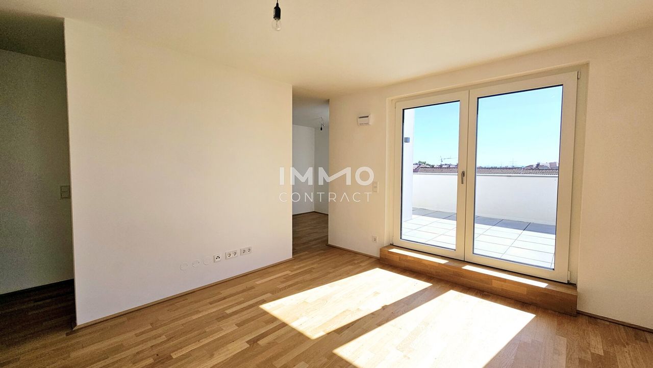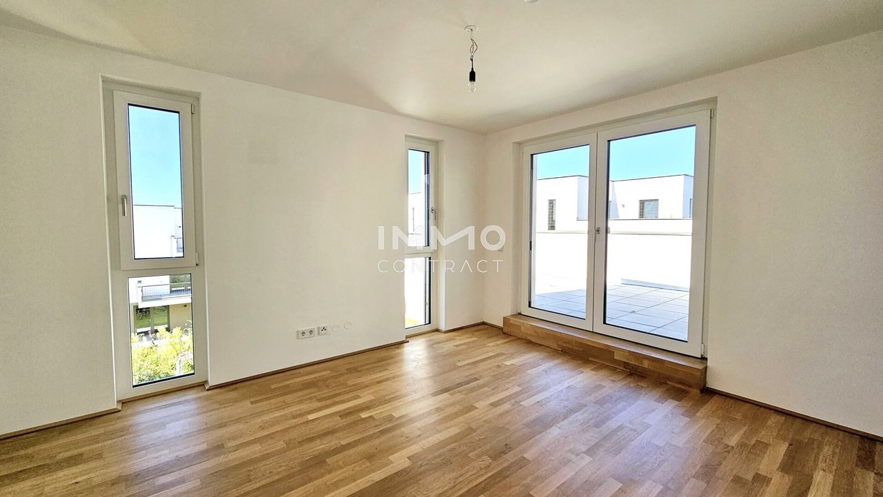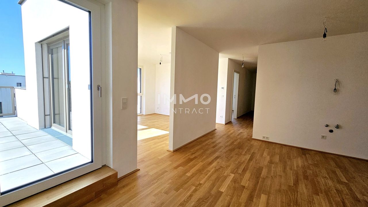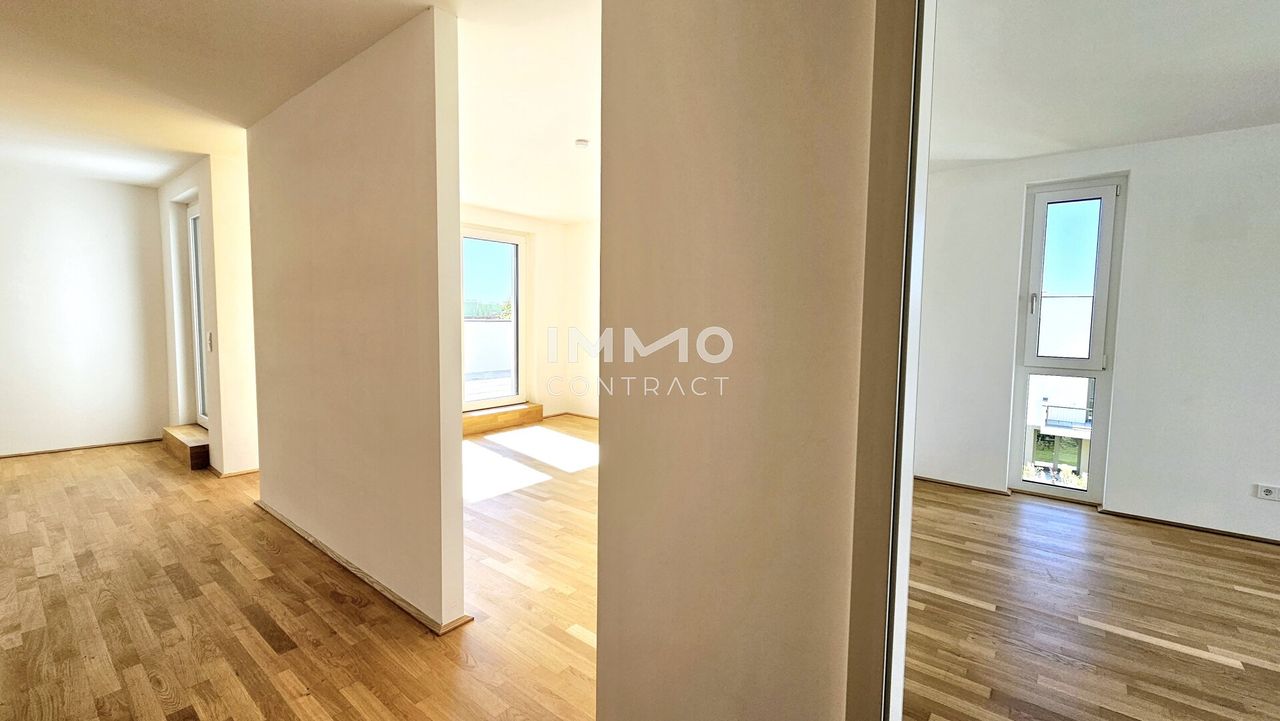 Diese traumhafte 4-Zimmer-Wohnung befindet sich im obersten Stockwerk mit Lift, besticht durch ihre 2 großen Dachterrassen und ist nach Süden/Westen ausgerichtet. Sie besteht aus einem großen Wohn-/Esszimmer, Küchenecke und Ausgang auf eine der Terrassen. Die 3 Schlafzimmer, eines davon mit Zugang zur weiteren Terrasse, zeigen in die ruhige Anlage nach Westen und Norden. Das Bad mit Badewanne, Dusche, WC und Waschmaschinenanschluss ist zeitlos weiß verfließt. Ein separates Gäste-WC ist auch vorhanden. Das große Vorzimmer und der Abstellraum bieten viel Stauraum. Ein Kellerabteil mit ca. 8 m2 ist der Wohnung ebenfalls zugeordnet.