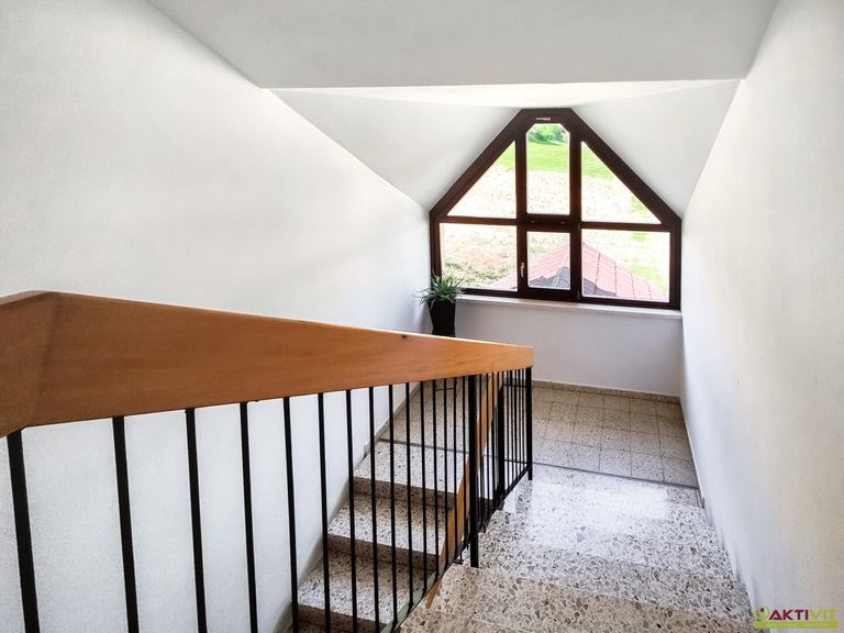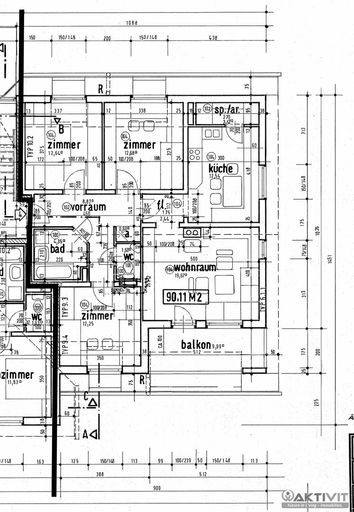 Die Wohnung befindet sich im ersten Obergeschoss eines im Jahr 1989 errichteten Mehrparteienhauses. Auf rund 90 m² bietet sie vier gut geschnittene Zimmer: Vom zentralen Vorraum aus sind sämtliche Räume direkt zugänglich – eine optimale Raumaufteilung ohne Durchgangszimmer. Auf der rechten Seite befinden sich zwei Schlafzimmer, geradeaus gelangt man in die Küche mit Speisekammer sowie das Wohnzimmer mit Zugang zum Balkon. Auf der linken Seite des Vorraums befinden sich ein weiteres Schlafzimmer, das Badezimmer mit Badewanne sowie ein separates WC.