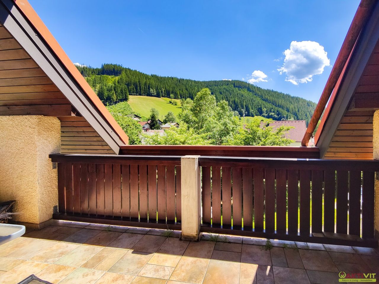 Nordseitiger Balkon mit Grün- und Bergblick