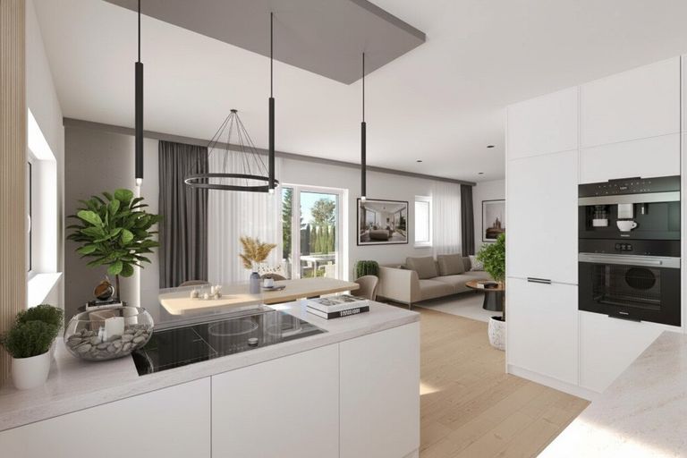 Die Wohnung verfügt über einen großzügigen Koch-Wohn-Essbereich mit einem direkten Zugang zur Terrasse und Garten. Große Fensterflächen sorgen für eine helle und freundliche Wohnatmosphäre.