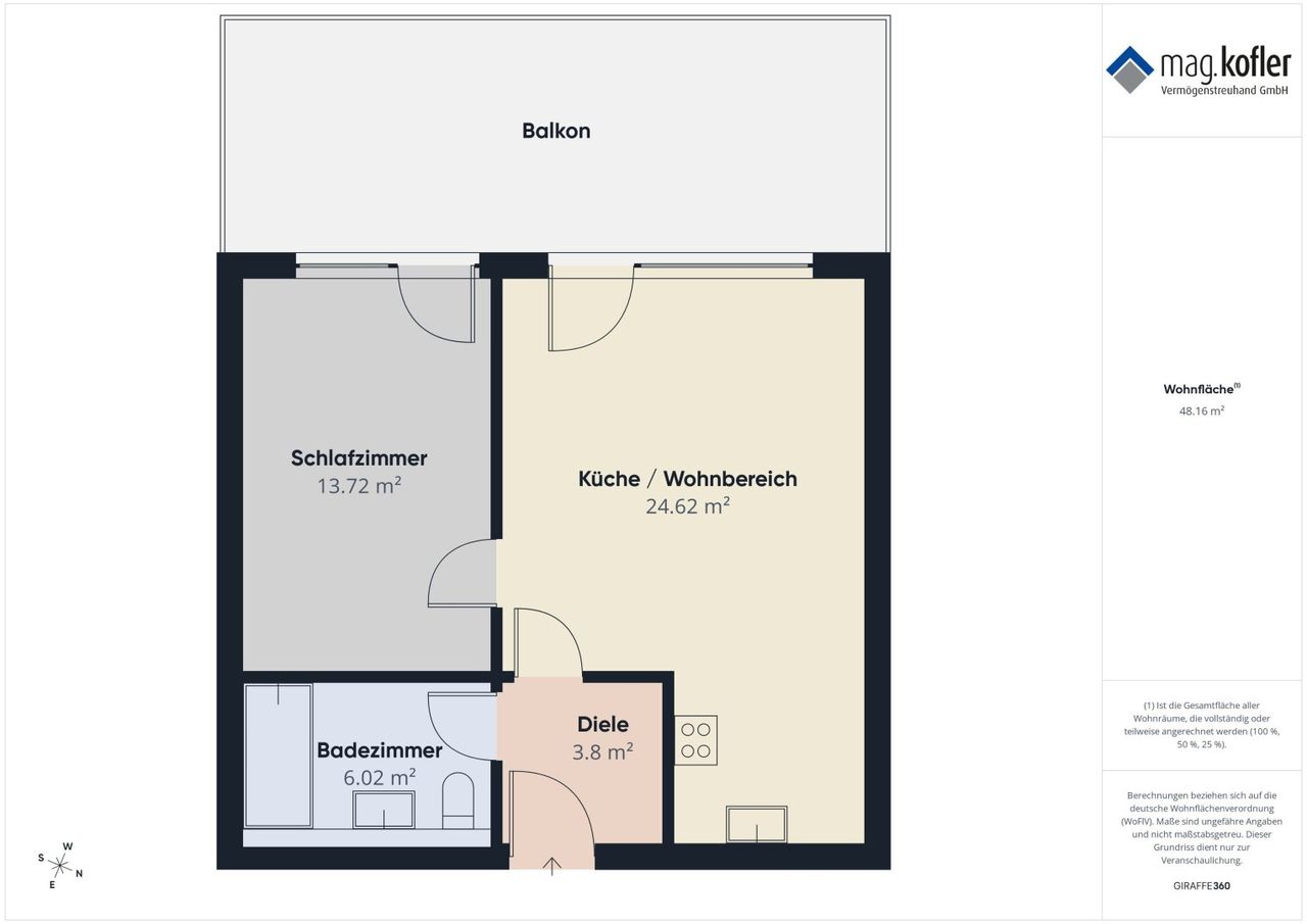 gesamte Wohnnutzfläche: ca. 48,16 m²