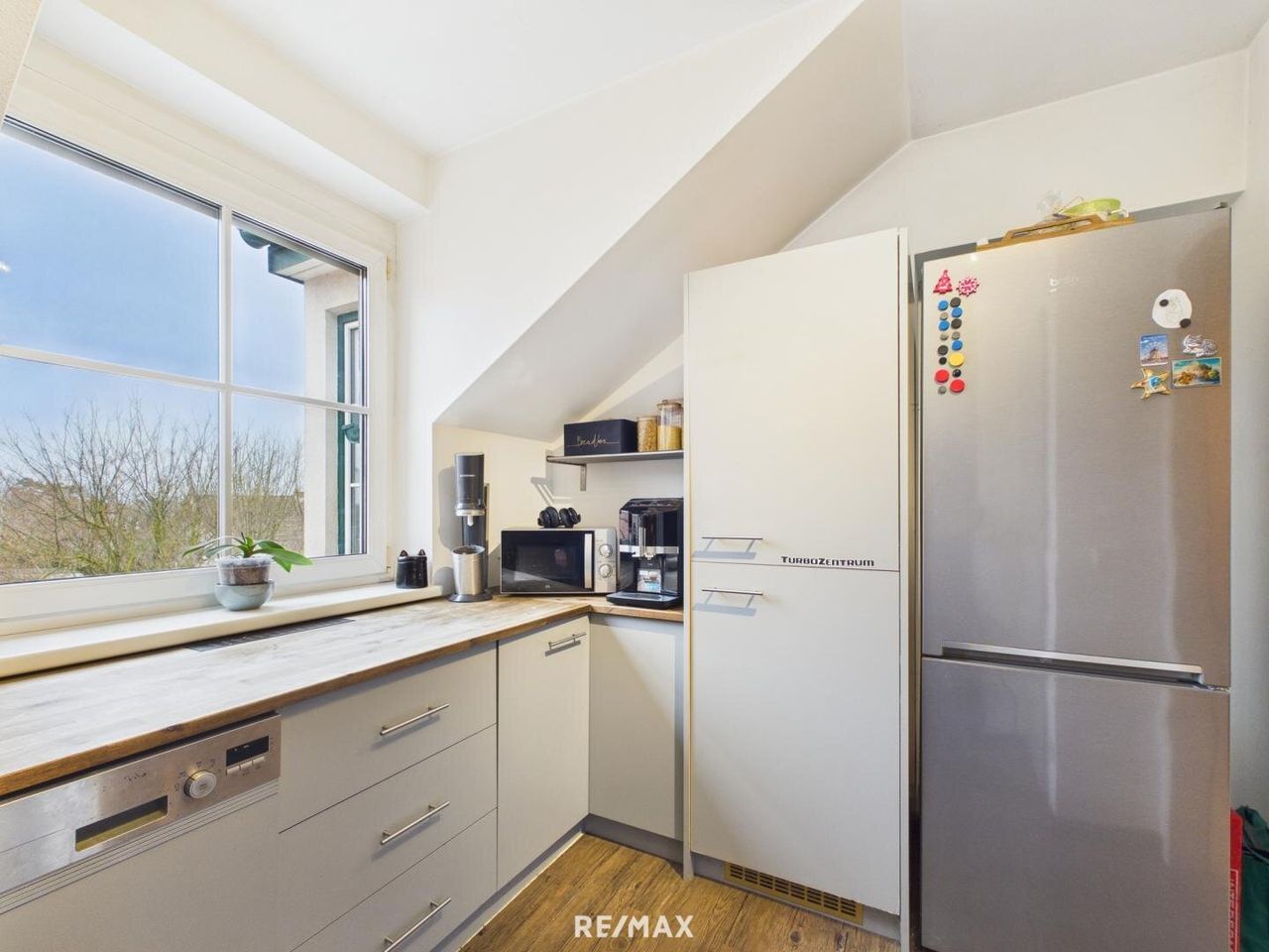 Separate Küche mit effizienter Raumaufteilung und ausreichend Platz für sämtliche Küchengeräte.