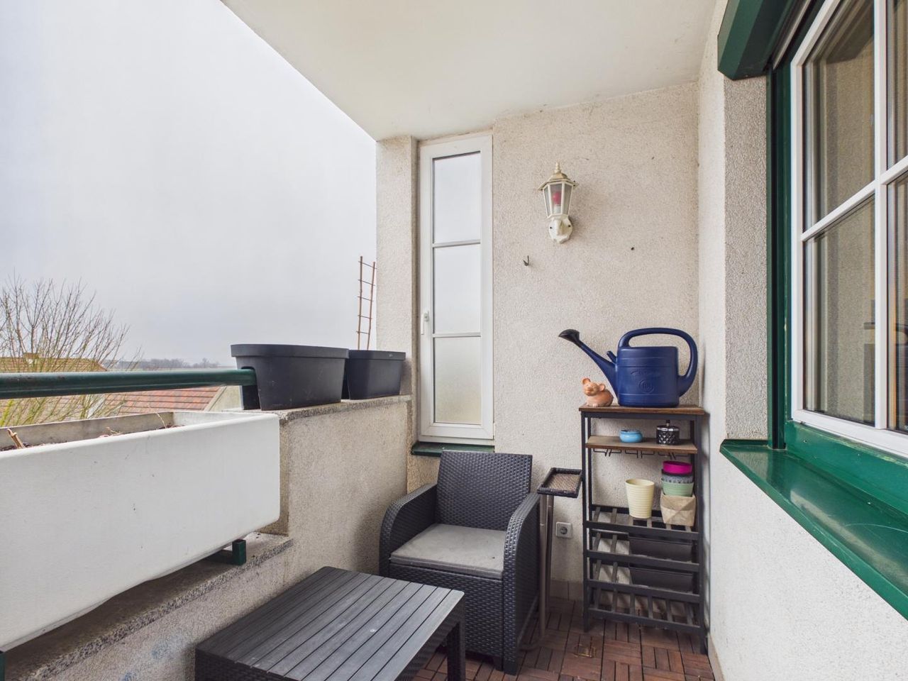 Mit rund 5 m² bietet die Loggia Platz für eine kleine Sitzgelegenheit und lädt zum Entspannen im Freien ein.