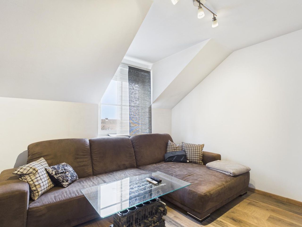 Großzügiger, lichtdurchfluteter Wohnbereich mit direktem Zugang zum Balkon – ideal für gemütliche Stunden oder gesellige Abende.