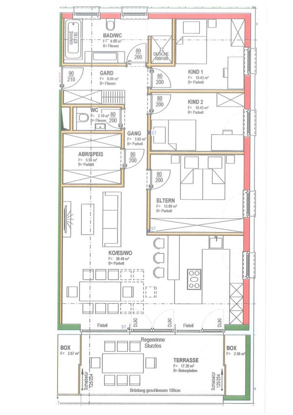 Genießen Sie das helle und freundliche Wohnambiente mit einer modernen Wohnküche, die zum gemeinsamen Kochen und Verweilen einlädt. Die offene Gestaltung schafft eine einladende Atmosphäre, die perfekt für Familien oder Paare ist. Hochwertige Parkett- und Fliesenböden sorgen für ein angenehmes Wohngefühl, ergänzt durch eine energiesparende Fußbodenheizung, die für wohlige Wärme an kalten Tagen sorgt.