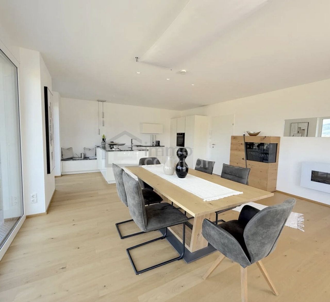 Das Herzstück der Wohnung ist der großzügige Wohn- und Essbereich mit einer exklusiven, offen gestalteten Einbauküche, ausgestattet mit hochwertigen Bosch-Geräten und einem BORA-Kochfeldabzugssystem – hier können Sie kulinarische Köstlichkeiten zubereiten und gesellige Abende mit Freunden und Familie zu verbringen.