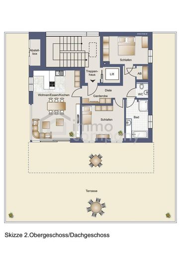 Das Highlight der Wohnung ist die 188,52 m² große Terrasse (39,04 m² überdacht), die Ihnen nicht nur einen Platz im Freien bietet, sondern auch einen spektakulären Ausblick auf die umliegenden Berge. Hier können Sie den Tag mit einem Frühstück im Freien beginnen oder abends bei einem Glas Wein entspannen und den Sonnenuntergang genießen.