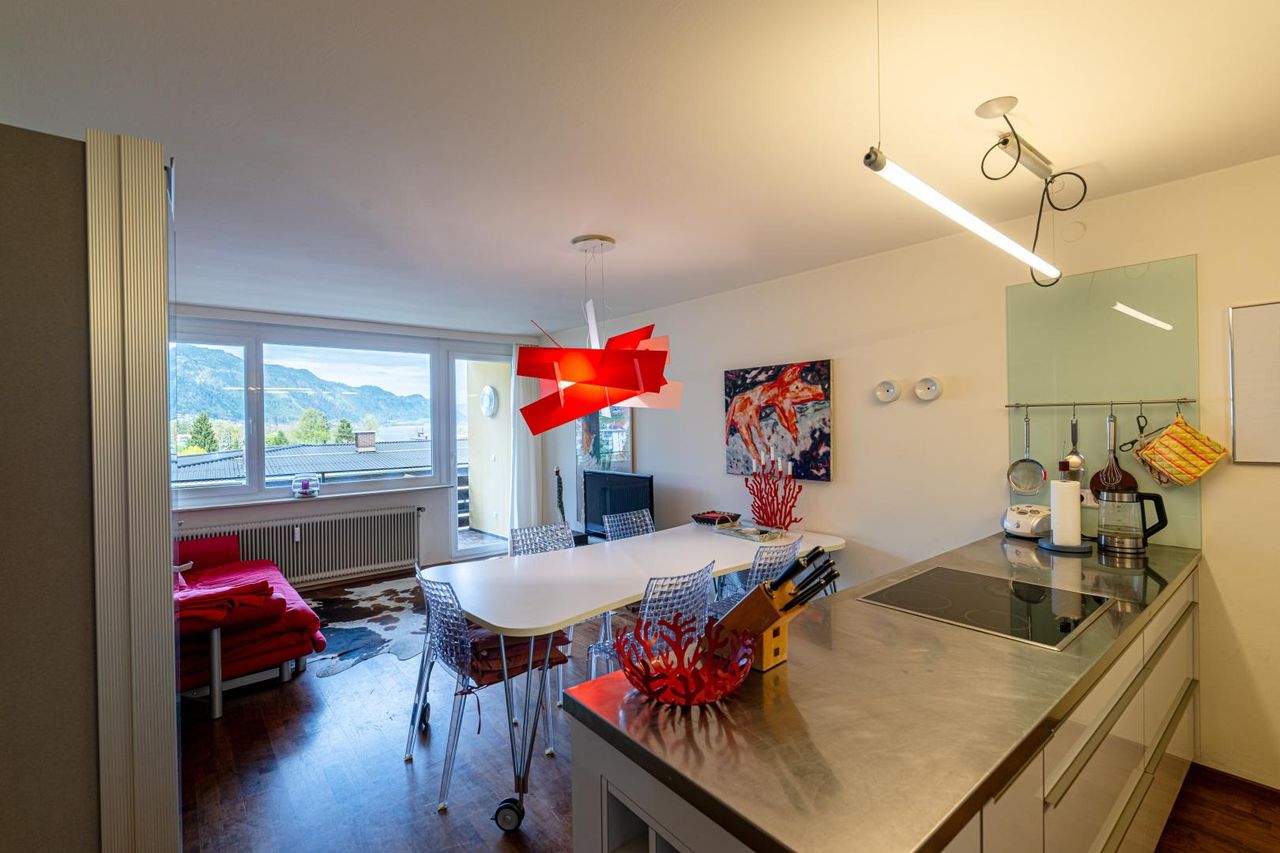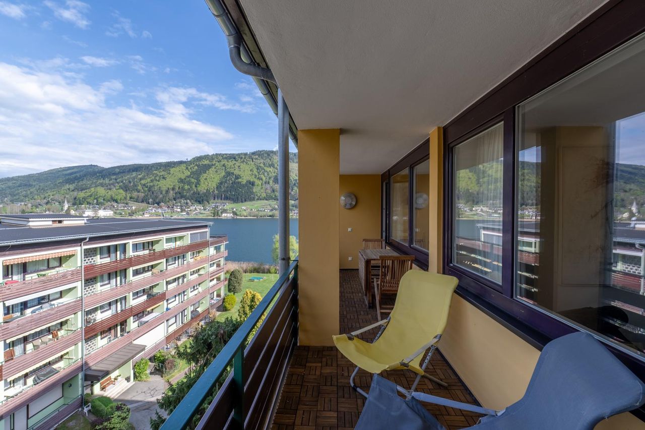 Auf rund 52 m² Wohnfläche vereint die Wohnung hochwertige Ausstattung mit einem durchdachten Raumkonzept und einem außergewöhnlichen Wohngefühl. Die Immobilie befindet sich im obersten Stockwerk (6. Liftstock) einer äußerst gepflegten Wohnanlage und bietet dadurch nicht nur Ruhe, sondern auch einen traumhaften Panoramablick. Ein absolutes Highlight ist die großzügige Loggia welche sich über rund 12m² erstreckt. Die sowohl vom Wohn-Essbereich als auch vom Schlafzimmer aus zugänglich ist. Hier genießen Sie herrliche Sonnenstunden sowie einen beeindruckenden Blick auf die umliegenden Berglandschaft und den Ossiacher See – ein Ort zum Entspannen und Verweilen.