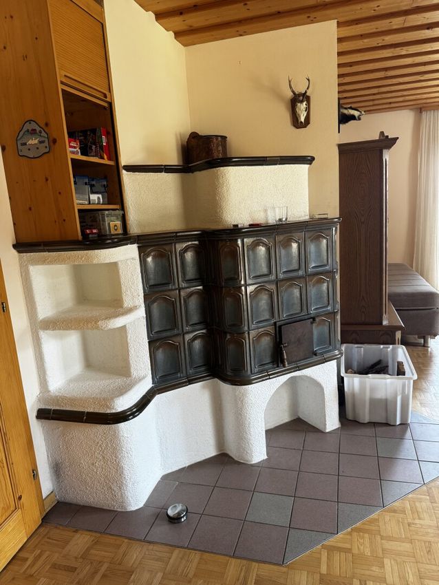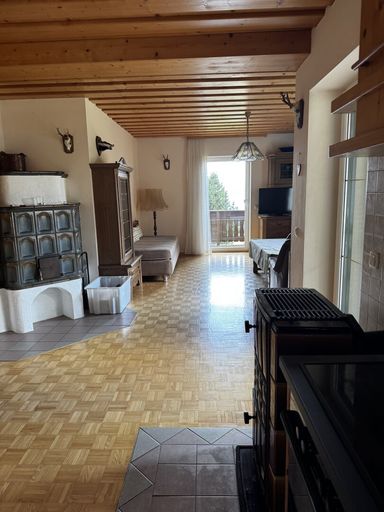 - Wohn-Essbereich mit Küchenzeile, Kachelofen