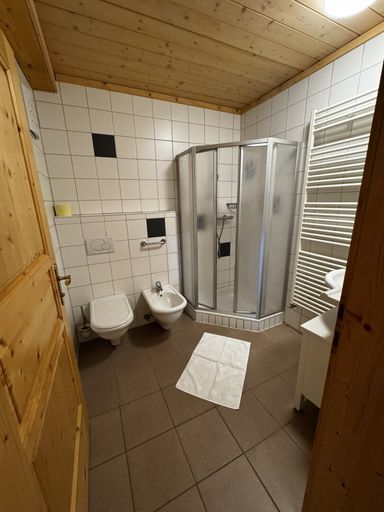- Badezimmer mit Dusche, Waschtisch, Bidet und Wc