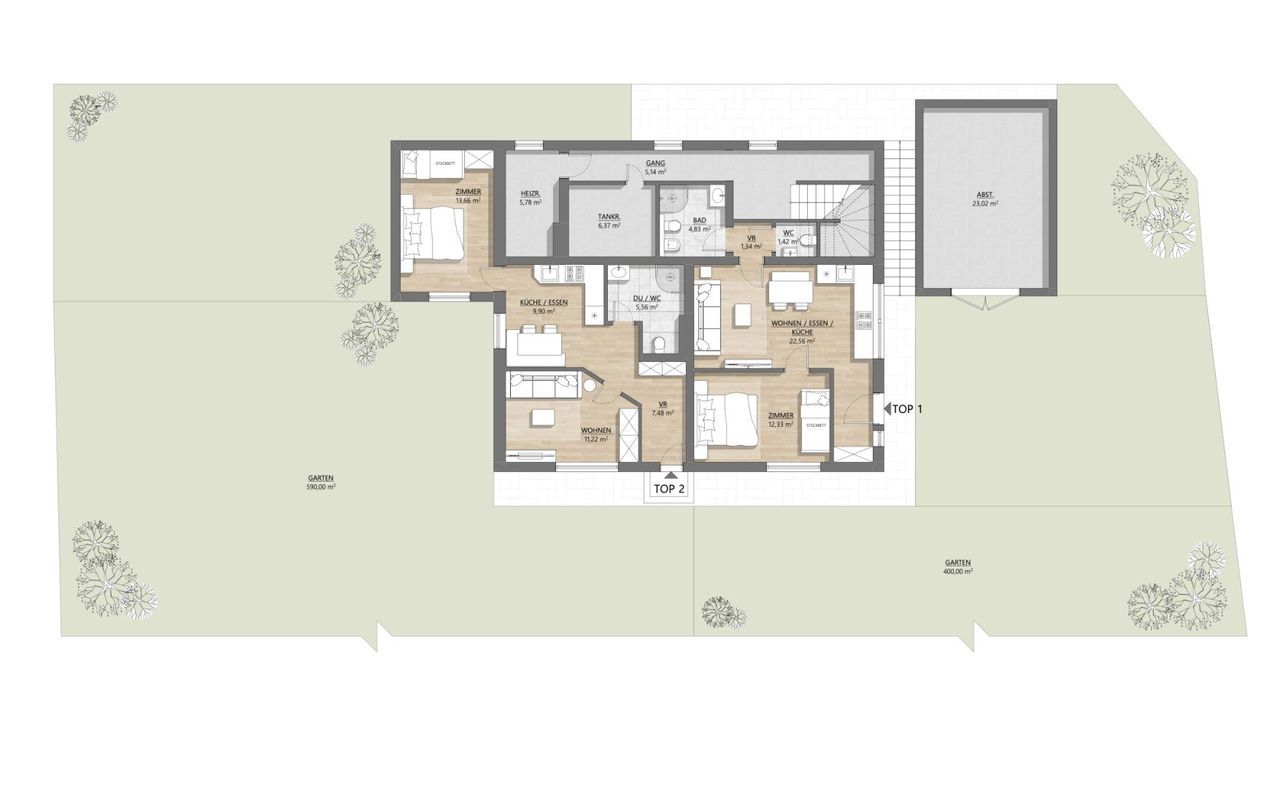 - 1 Abstellraum mit ca. 15 m² – ideal für Sommer- und Skiausrüstung