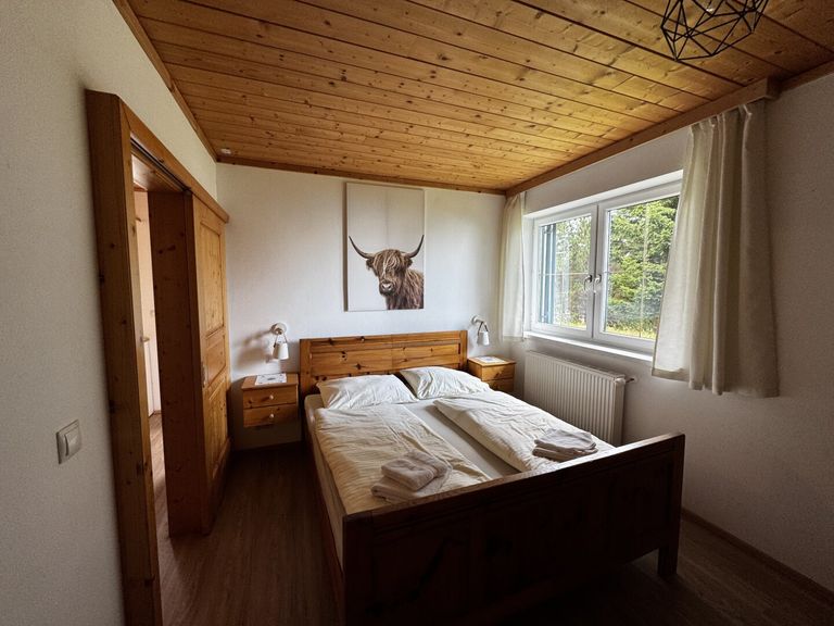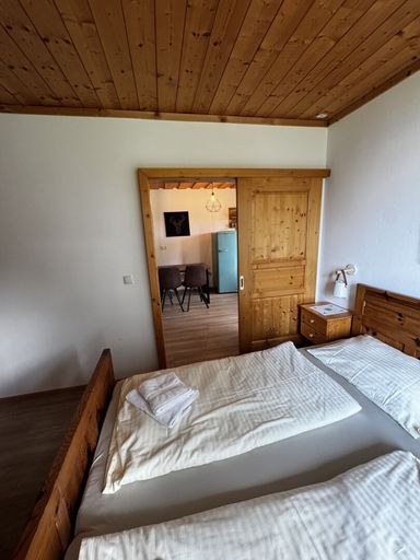 - Schlafzimmer (derzeit mit Doppelbett und Stockbett ausgestattet)