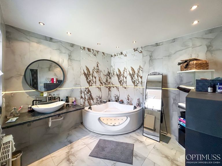 Badezimmer: ca. 8,09 m² (mit Wirlpool-Badewanne, begehbarer Dusche, Waschbecken)