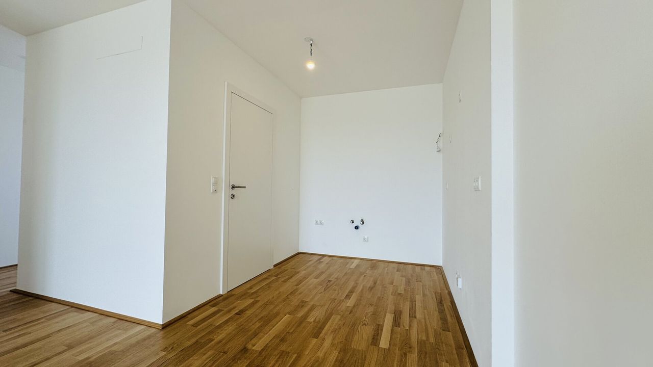 Hochwertiger Echtholzparkett, zukunftsorientierte, umweltbewusste Fernwärme sowie die Möglichkeit zur Vorbereitung der E-Tankstelle runden das Ganze ab.