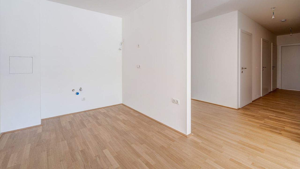 Hochwertiger Echtholzparkett, zukunftsorientierte, umweltbewusste Fernwärme sowie die Möglichkeit zur Vorbereitung der E-Tankstelle runden das Ganze ab.