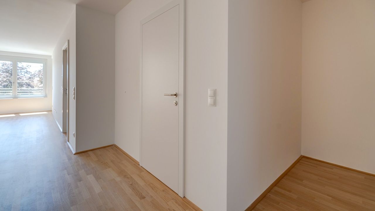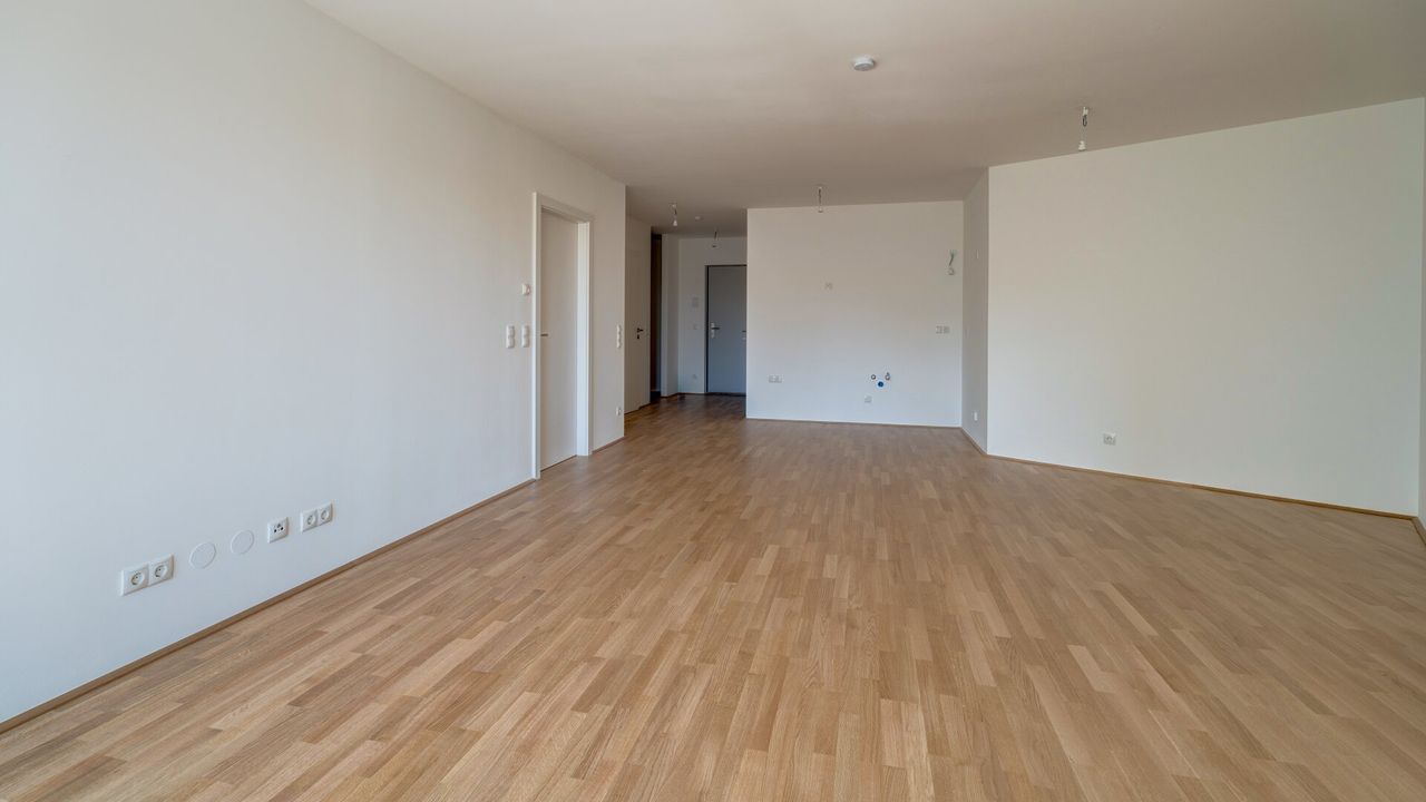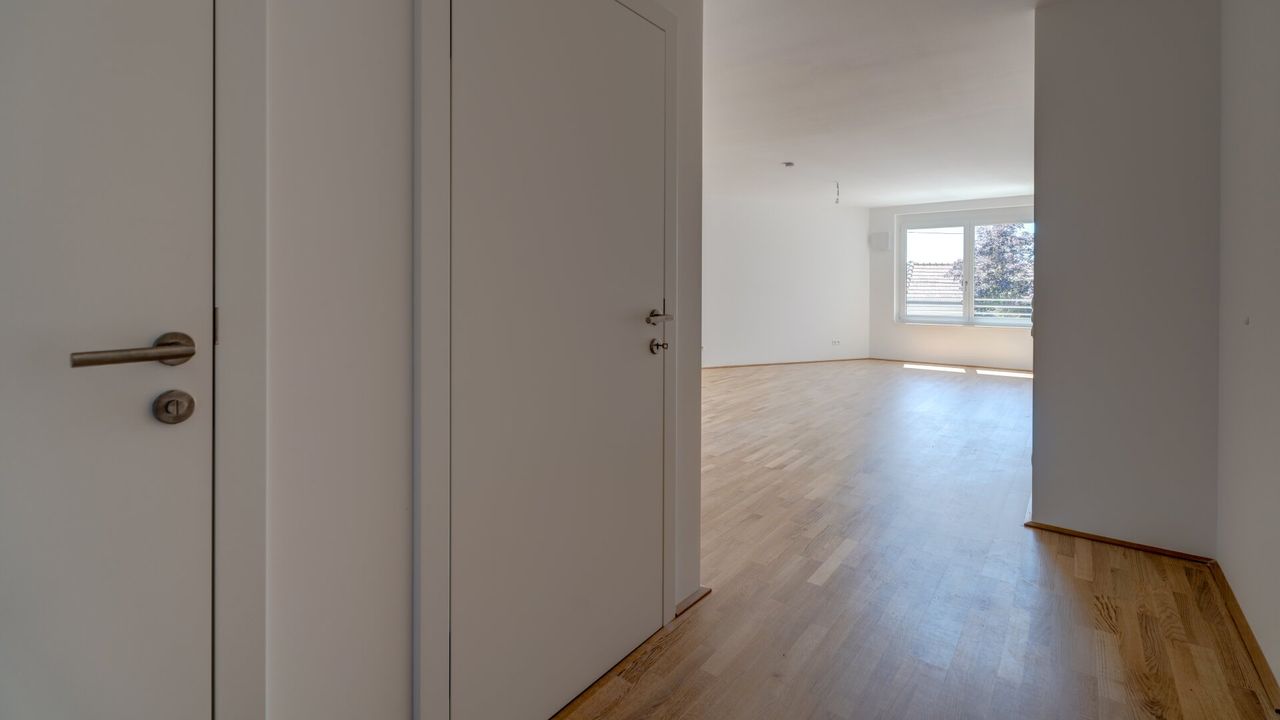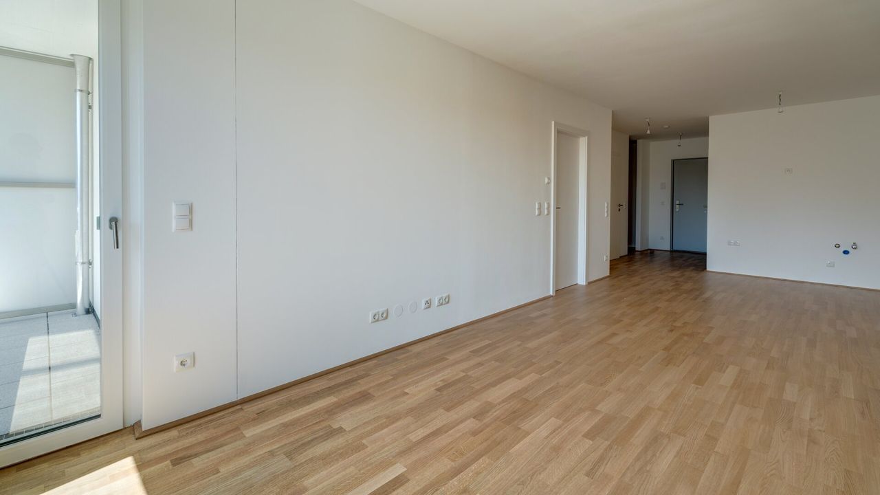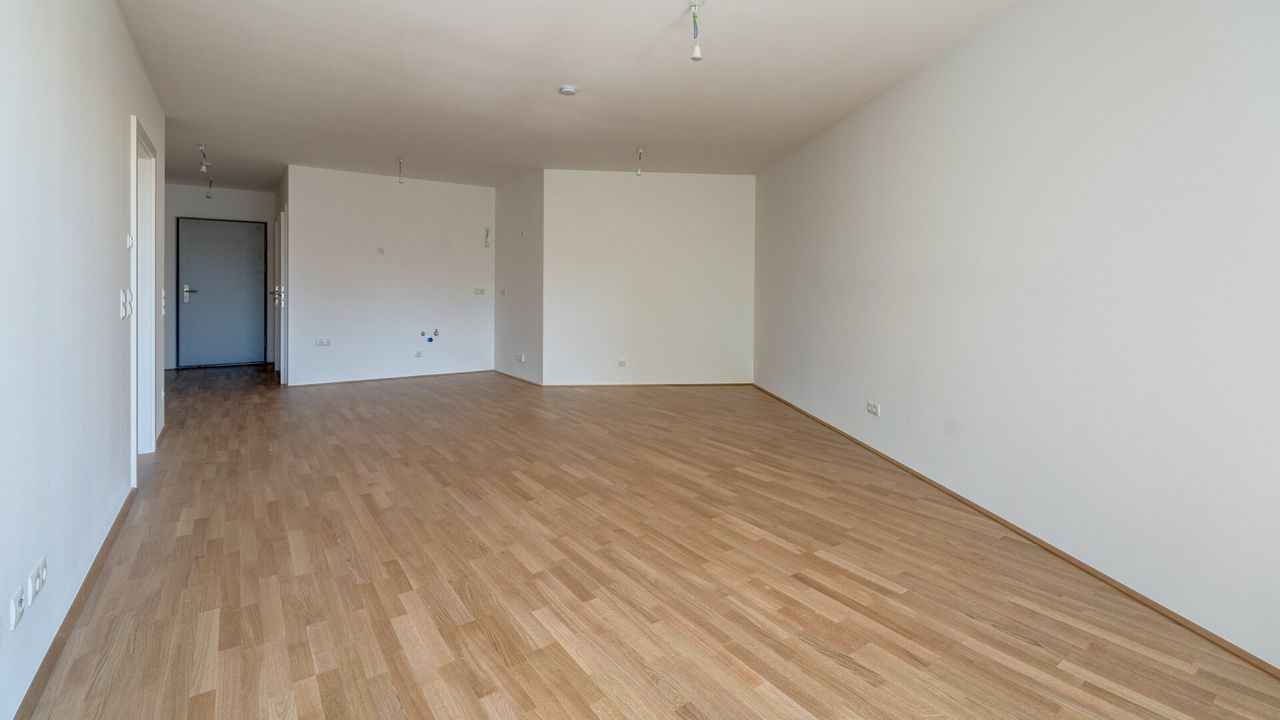 - Wohnnutzfläche von rund 63 m² bestehend aus Vorraum, WC, Abstellraum, Schrankraum, Bad, Schlafzimmer, Wohnküche