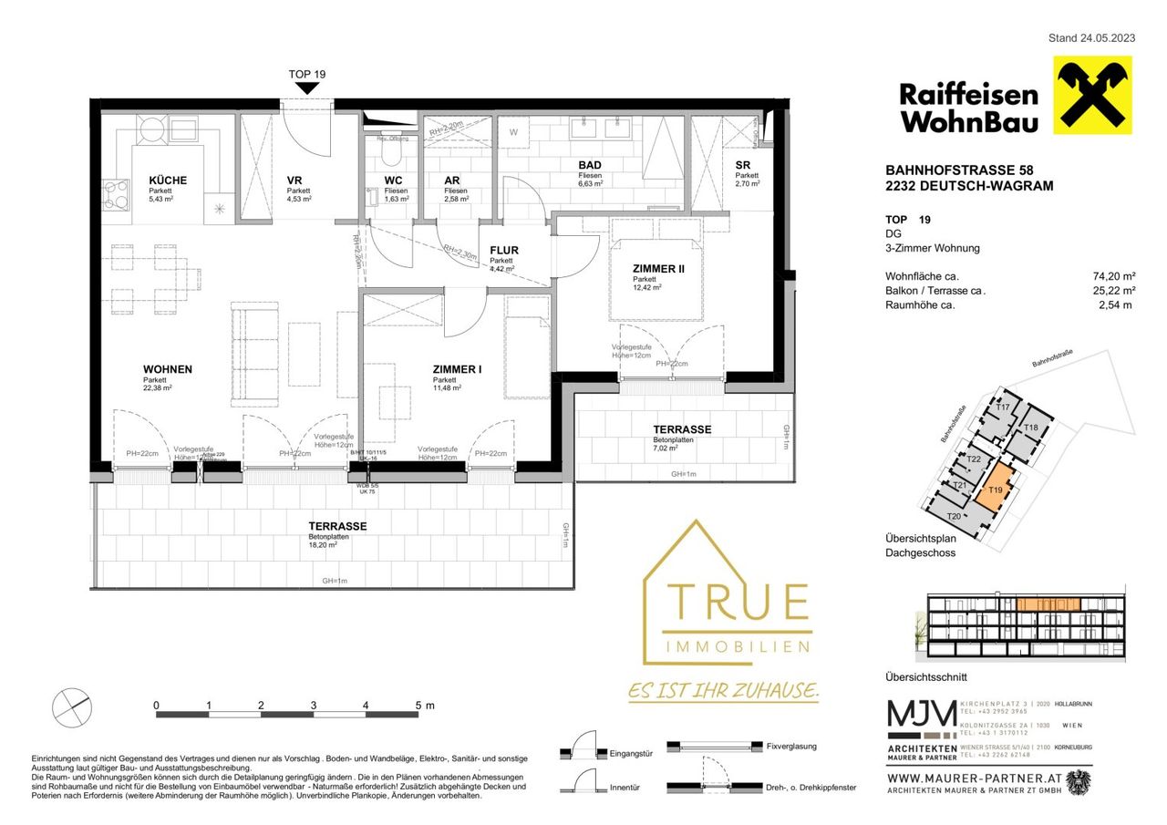 Traumhafte Dachgeschosswohnung in Deutsch-Wagram - 2 Terrassen, Erstbezug - PROVISION BEZAHLT DER ABGEBER