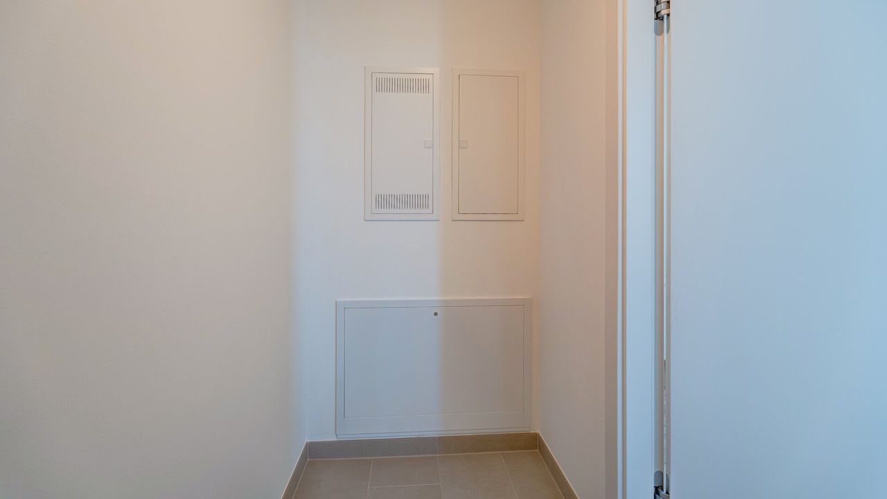 Im Vorraum angekommen, gelangen Sie linkerhand in den Abstellraum sowie in das WC mit Handwaschbecken. Rechterhand finden Sie das Kinderzimmer weiters die Wohnküche und das Elternschlafzimmer mit Ausgang auf die Loggia.