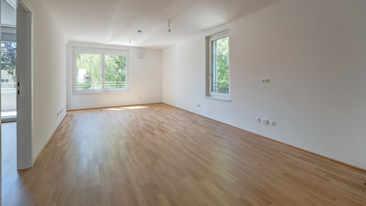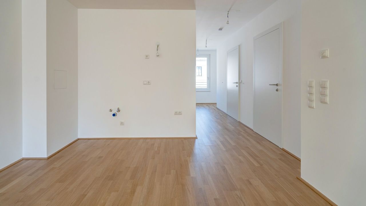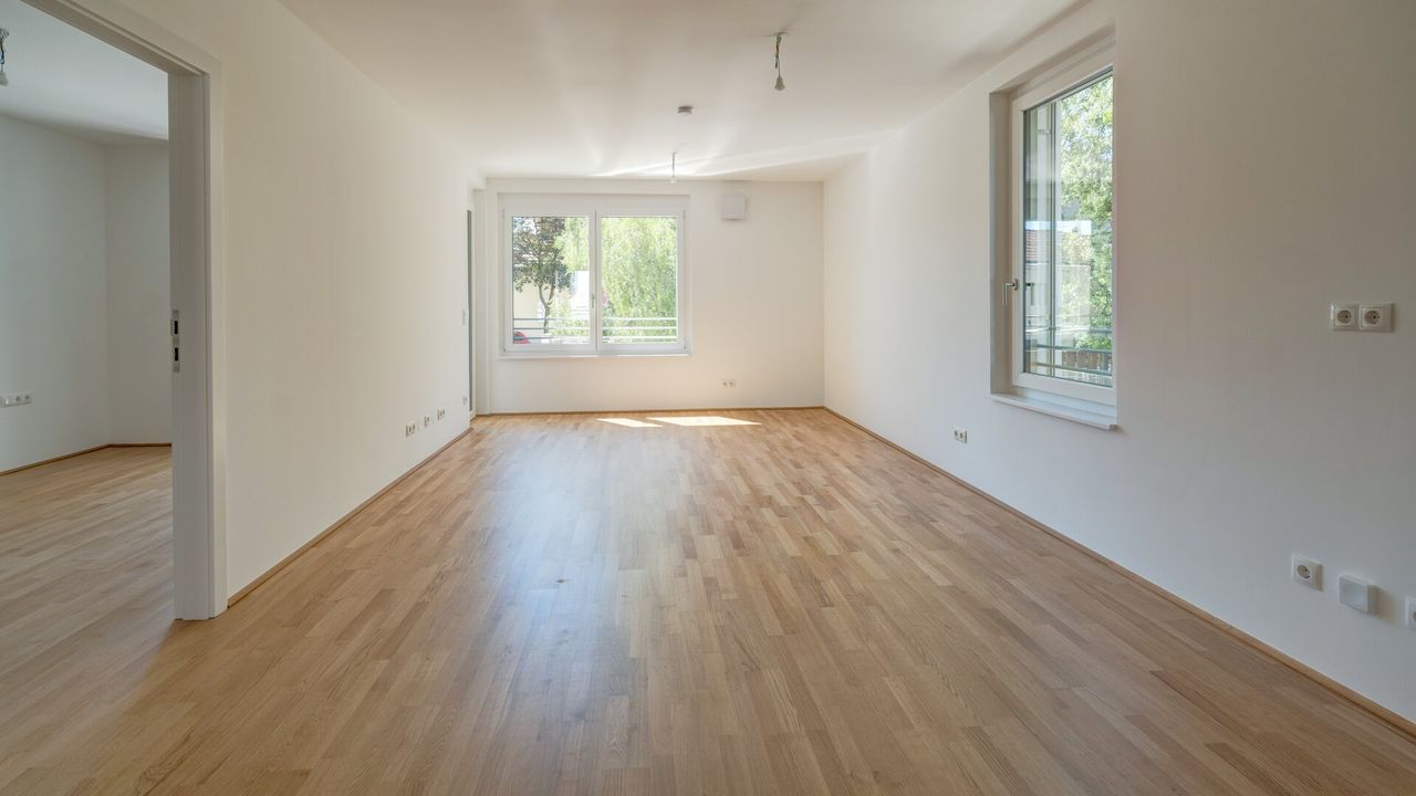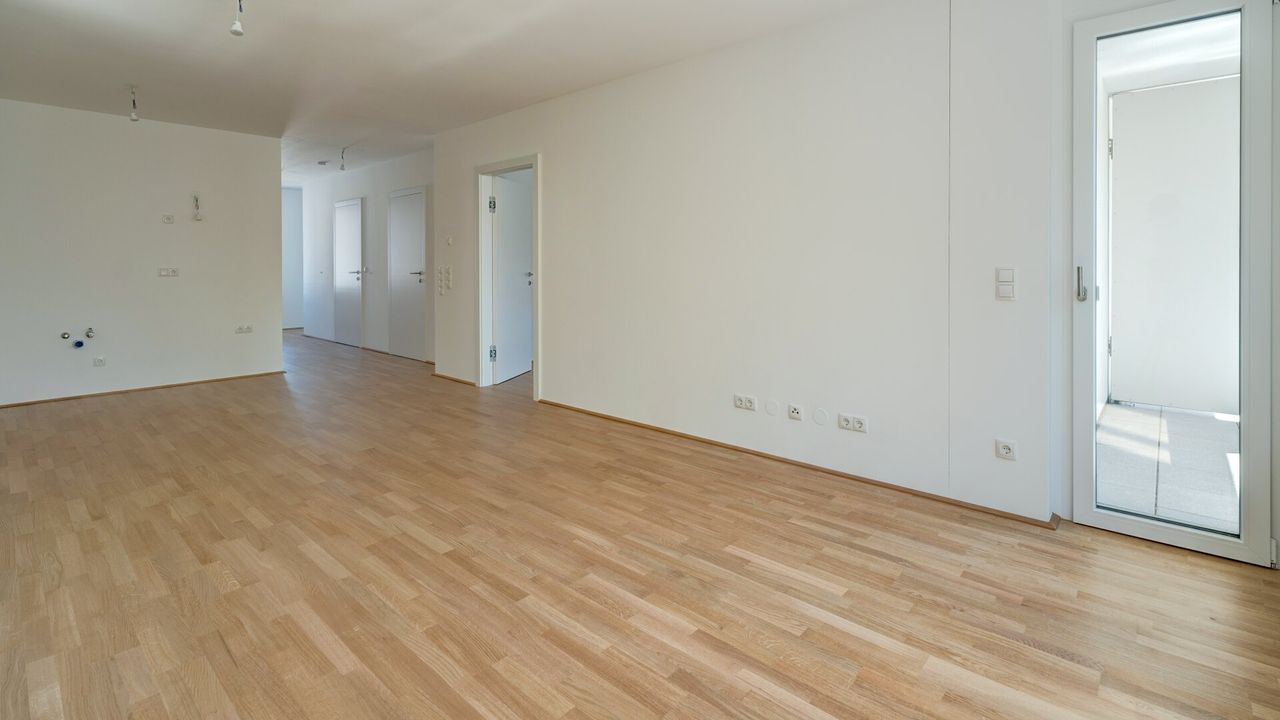 Hochwertiger Echtholzparkett, zukunftsorientierte, umweltbewusste Fernwärme sowie die Möglichkeit zur Vorbereitung der E-Tankstelle runden das Ganze ab.