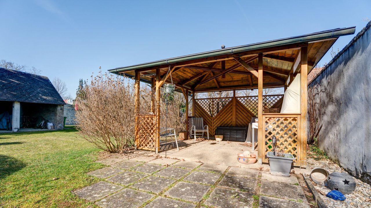 Die Liegenschaft verfügt zudem über einen gepflegten Gemeinschaftsgarten, der von einer Firma betreut wird und sich daher stets in einem sehr guten Zustand befindet. Der auf den Bildern ersichtliche Pavillon wird von der derzeitigen Eigentümerin bereits seit längerer Zeit genutzt und gilt praktisch als „ihr“ Pavillon, wobei hierfür keine schriftliche Vereinbarung besteht.