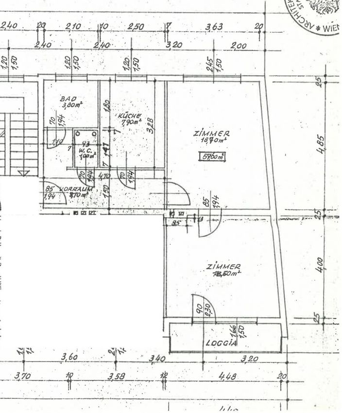 Im zweiten Stock angekommen betritt man die Wohnung über ein zentral gelegenes Vorzimmer, das Zugang zu nahezu allen Räumlichkeiten der Wohnung bietet.
