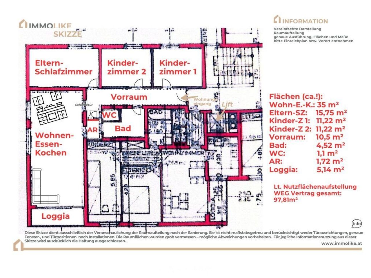 Einzelne Angaben können sich geringfügig ändern, da noch Unterlagen von der Hausverwaltung übermittelt werden. Die derzeit angeführten Energieausweiswerte beziehen sich auf den Stand vor der Sanierung. Der aktuelle Energieausweis wird nach Erhalt übermittelt.