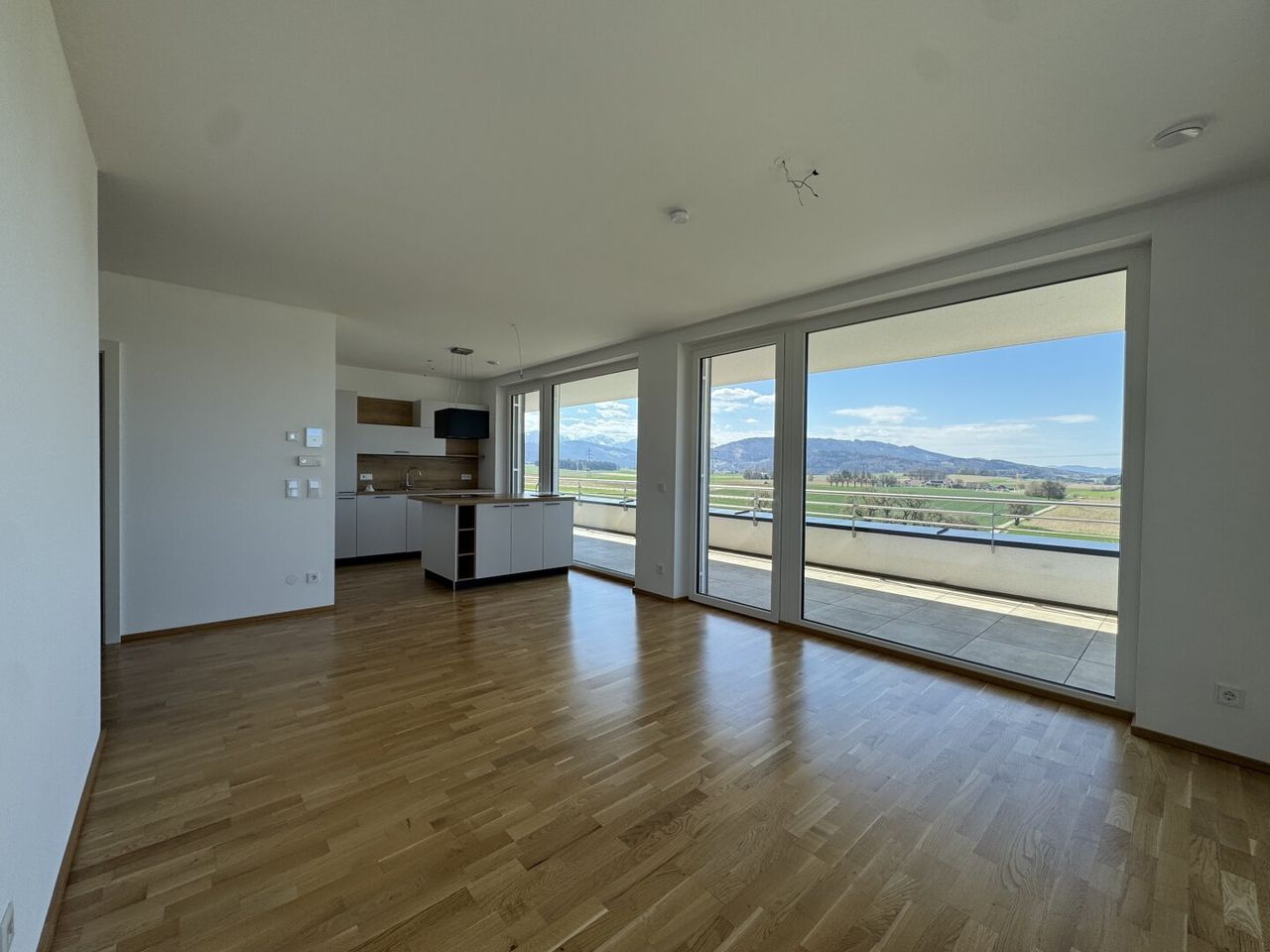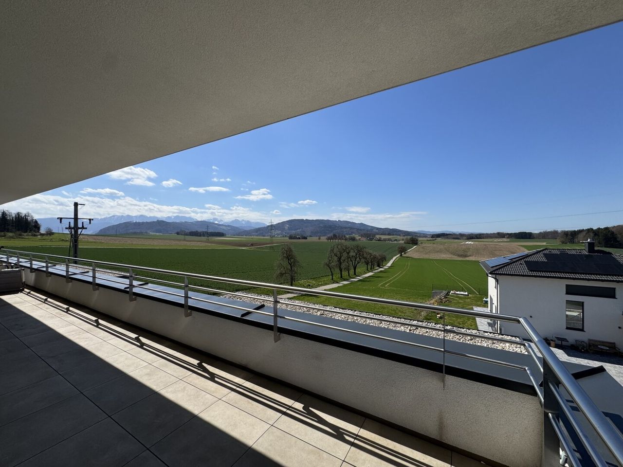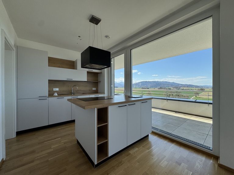 Ein besonderes Highlight dieser Wohnung ist die ca. 20m² große Terrasse mit traumhaftem Weitblick ins Grüne. Hier genießen Sie entspannte Sonnenstunden, laue Sommerabende und einen freien Blick bis zur umliegenden Berglandschaft – ein privater Rückzugsort mit Panorama-Charakter.