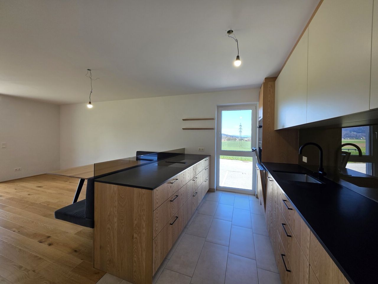 Ein großzügiger, möblierter Vorraum bietet reichlich Platz für Garderobe und Aufbewahrung. Moderne Annehmlichkeiten wie Fußbodenheizung, elektrische Raffstores und Fliegengitter erhöhen den Wohnkomfort zusätzlich. Zwei PKW-Stellplätze direkt vor der Haustür sorgen für bequeme Parkmöglichkeiten. Der schöne Fernblick auf die umliegende Bergwelt und ins Grüne schafft eine entspannende Atmosphäre.
