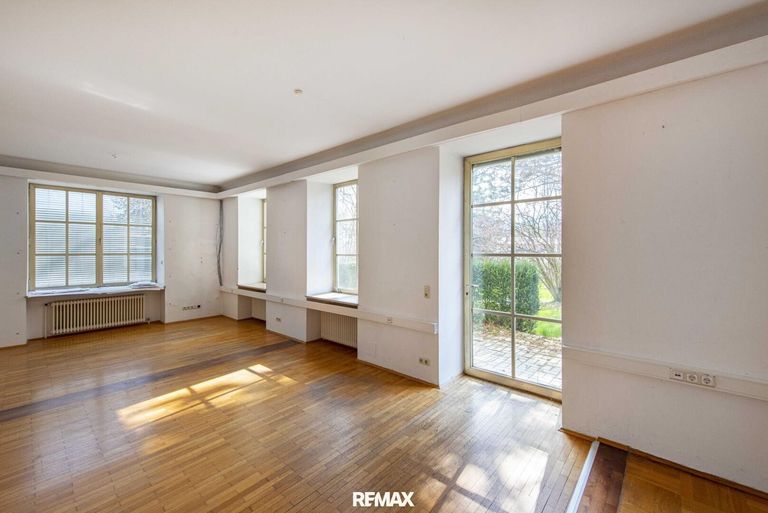 Zum Kauf gelangt das Gartengeschoss der historischen Villa Luise mit parkähnlichem Charakter, am Ende der schönen Gmundner Esplanade - wenige Gehminuten vom bekannten Schloss Toscana und -park entfernt. Sowohl ein öffentlicher Zugang zum See als auch ein Freibad befinden sich in unmittelbarer Nähe. Die Villa wurde von der namensgebenden hessischen Landgräfin Prinzessin Luise (Tochter von Kaiser Wilhelm I von Preußen) Mitte des 19. Jhdts. im Stil der italienischen Neorenaissance errichtet. Die Ursprungspläne dazu stammen wahrscheinlich (nicht gesichert) vom berühmten dänischen Ringstraßenarchitekten Theophil Hansen. Derzeit ist ein Architekturbüro in diesen Räumlichkeiten untergebracht. Von diesem stammen auch die einreichfähigen, mit dem Bauamt...