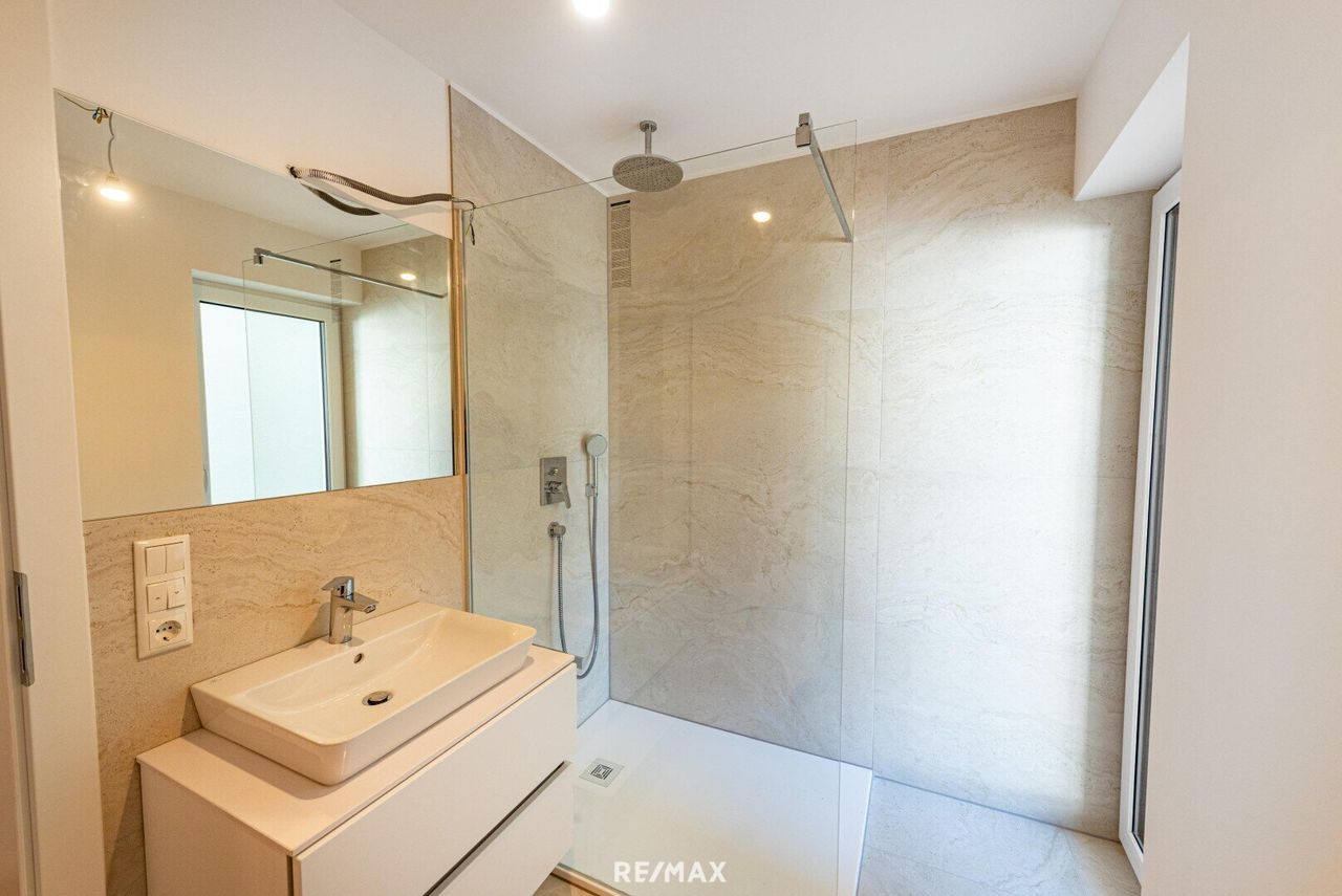 Die wunderschöne Etagenwohnung TOP 3 befindet sich im 2. Stock und vereint historischen Charme mit zeitlos, eleganter Architektur, hochwertigen Materialien und modernem Grundriss mit Erstbezug. Das besondere Wohngefühl wird durch den en suite Liftzugang in der Wohnung, die zeitlos schönen und hochwertigen Trapa Holzböden, die bodentiefen Panoramafenster mit Sonnenschutz und das geschmackvolle Bad noch verstärkt.