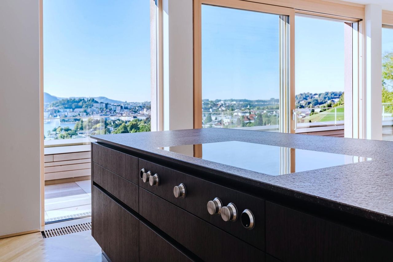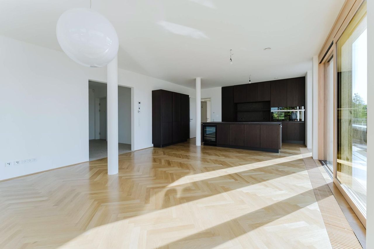 Die Immobilie, mit 4-Zimmern, ist sofort verfügbar und mit einer sehr exklusiven Designer-Küche ausgestattet. Die Strasser Natursteinplatten, Miele Geräte inkl. Weinlagerschrank u.v.m. lassen das Kochen zum Erlebnis werden - mit phänomenaler Aussicht! Die Küche ist im Kaufpreis nicht inkludiert! Kann aber auf Wunsch um EUR 86.000 (Verhandlungsbasis) abgelöst werden.