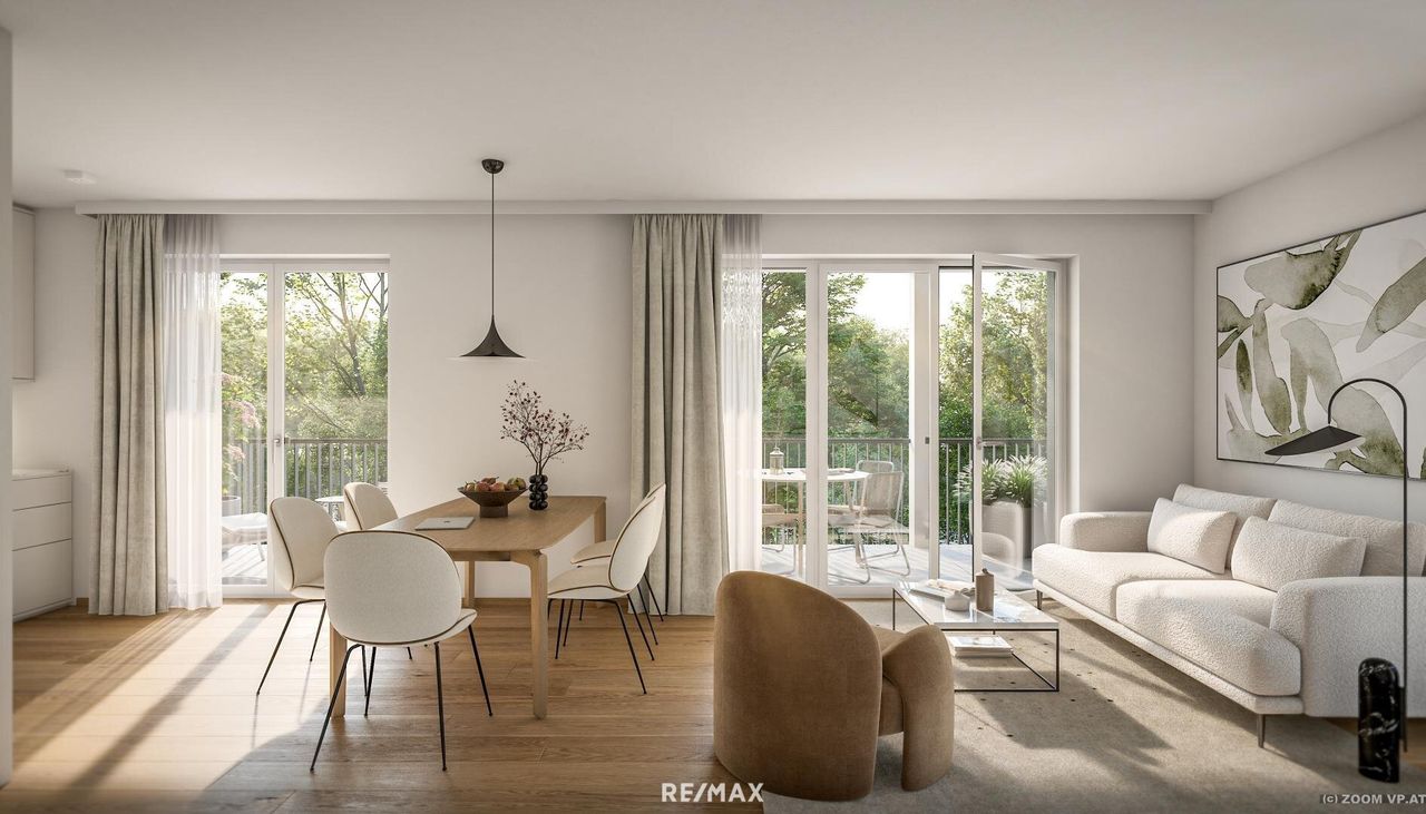 Jede Wohnung verfügt über eine großzügige Terrasse oder einen Balkon, die den Wohnraum ins Freie erweitern und ein Gefühl von Freiheit und Leichtigkeit vermitteln. Die durchdachte Architektur sorgt für helle, offene Räume und ein modernes Wohngefühl. Beheizt wird das gesamte Objekt nachhaltig und effizient über eine moderne Luftwärmepumpe.