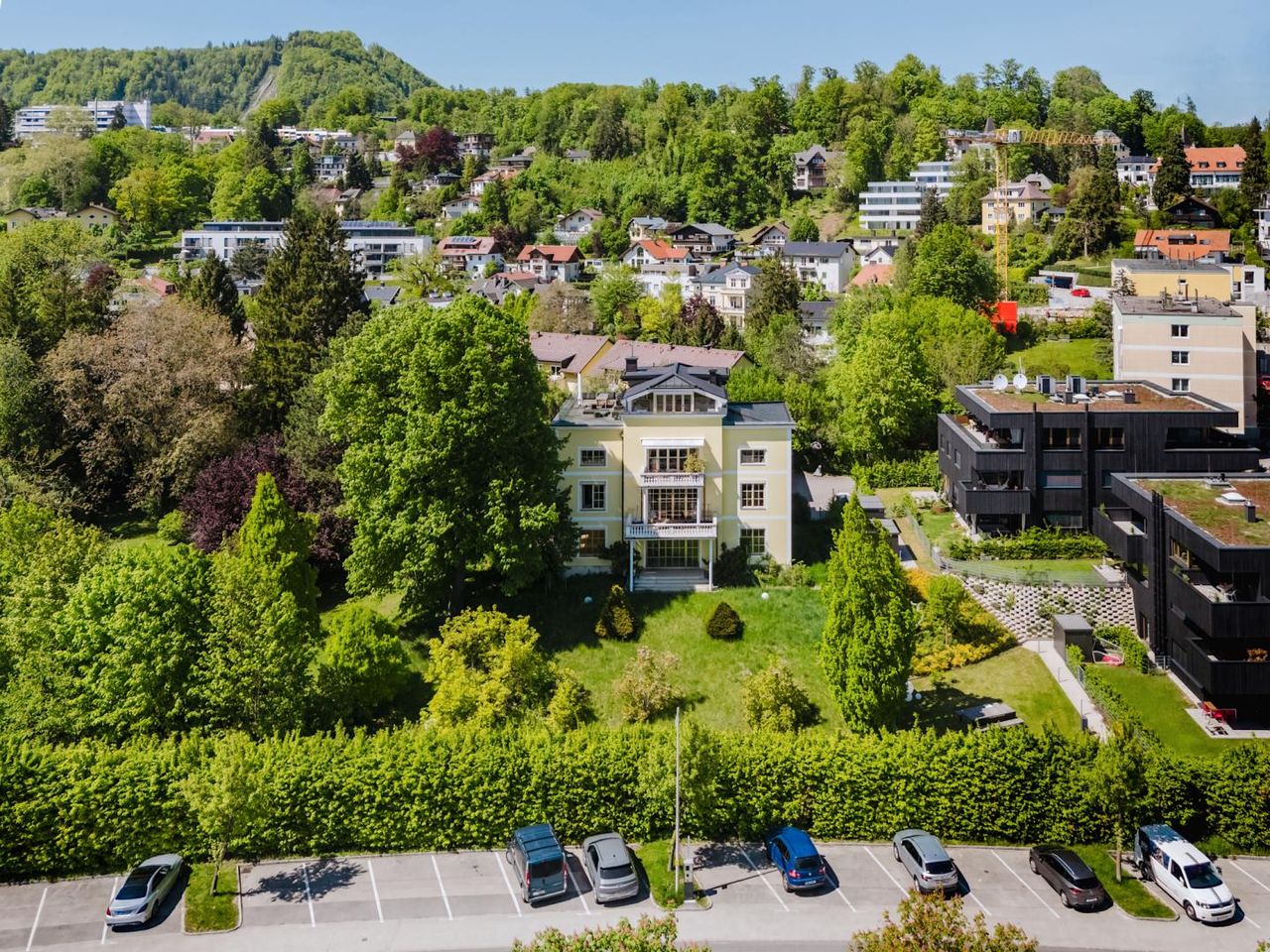 Im Anbau der "Villa Louise" befindet sich ein zur Wohnung zugehörige Garagenstellplatz TOP 10. Ein Freistellplatz TOP 11 ist vor dem Haupteingang situiert.