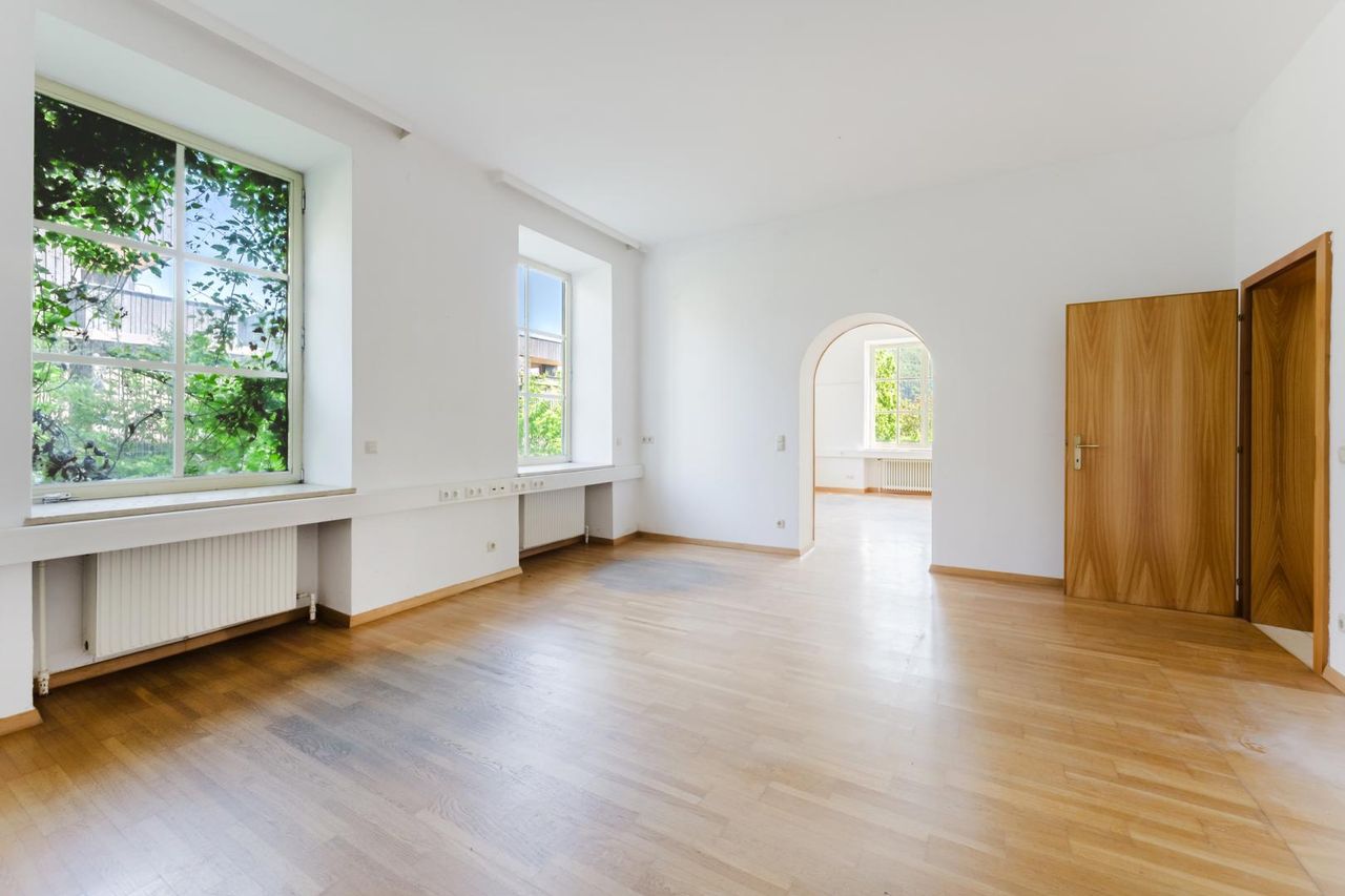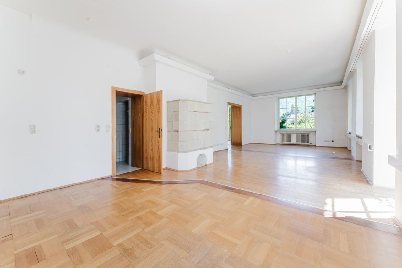 PULSIERENDES LEBEN - Historische Villen-Wohnung - ca. 1.100 m² Eigengarten - Zubaumöglichkeit Poolhaus, Garage etc.