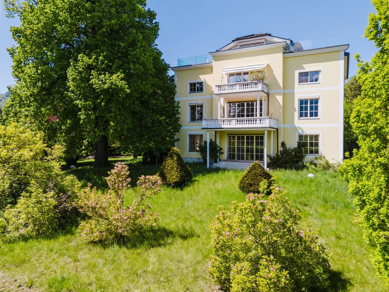 Neben den zwei Terrassen (südöstlich und südwestlich ausgerichtet), verfügt die Wohnung zudem über eine ca. 1.094,89 m² große Eigengartenfläche! Die Immobilie bietet Ihnen vom Großteil der Räumlichkeiten, sowie von den Terrassen und vom parkähnlichen Eigengarten, einen imposanten Blick auf den Traunstein.