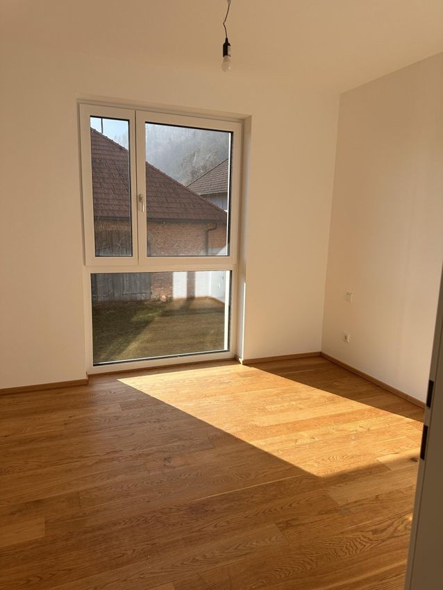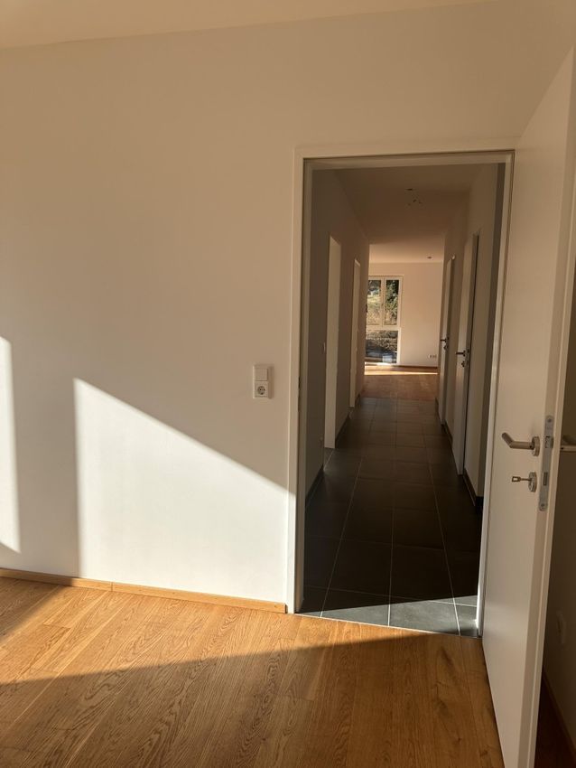 Die Raumaufteilung umfasst Vorraum, Abstellraum, 3 helle Schlafzimmer mit Blick ins Grüne, ein großzügiges Bad mit Wanne, Duschwand (wird noch eingebaut) und Doppelwaschbecken, ein extra WC sowie eine große Wohnküche mit Einbauküche inkl. Kochinsel.