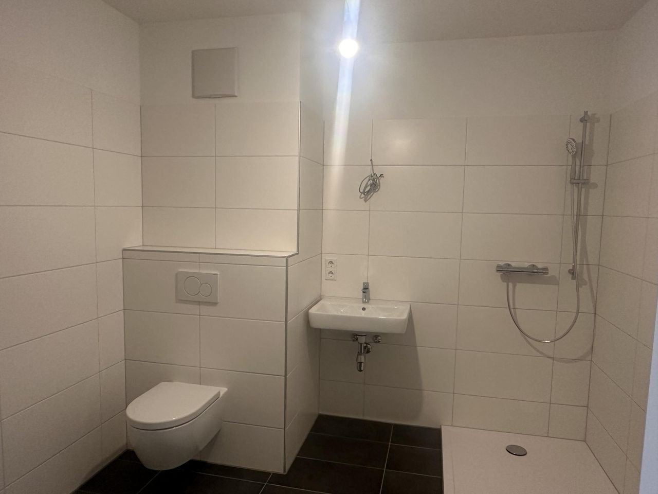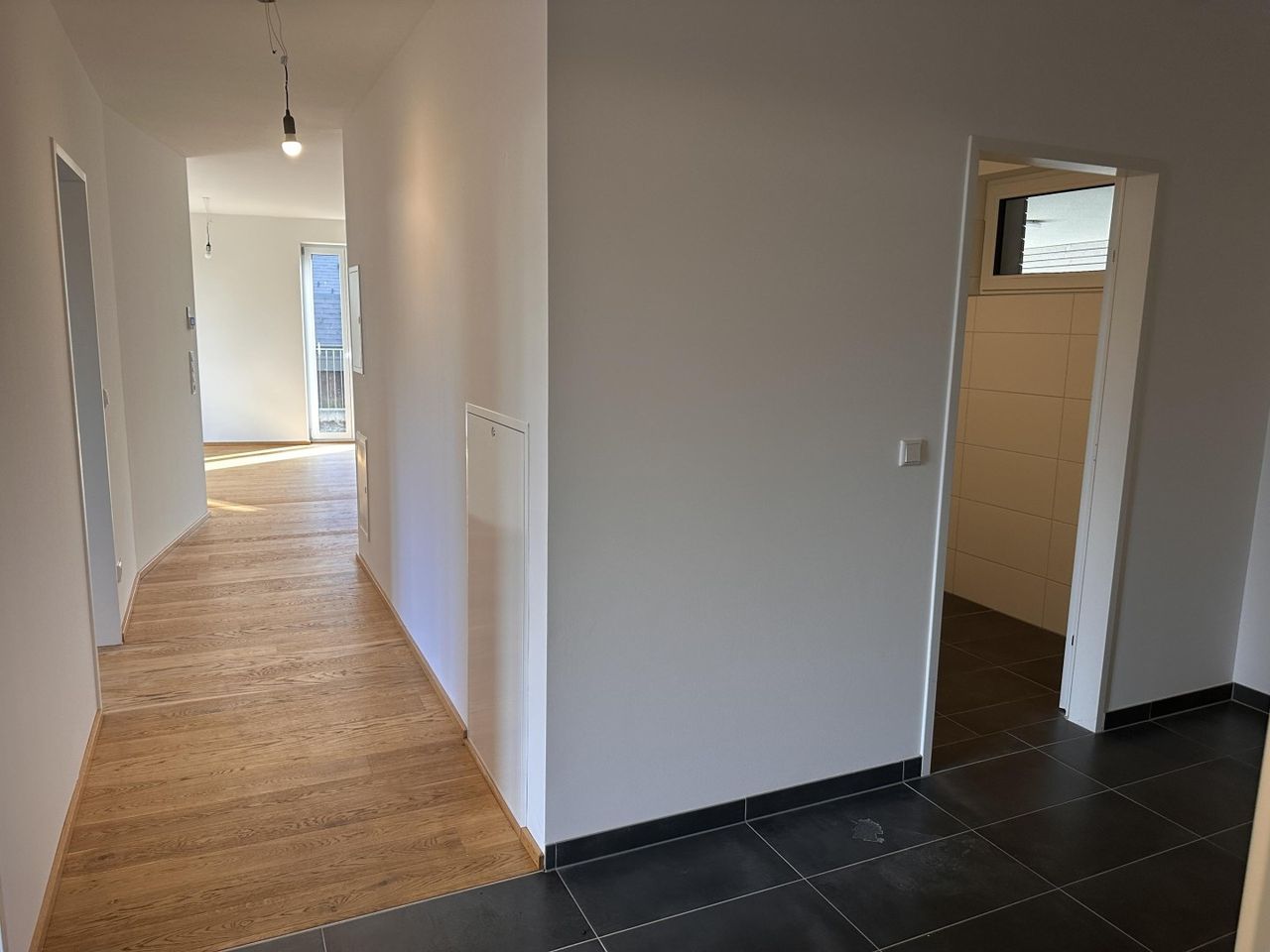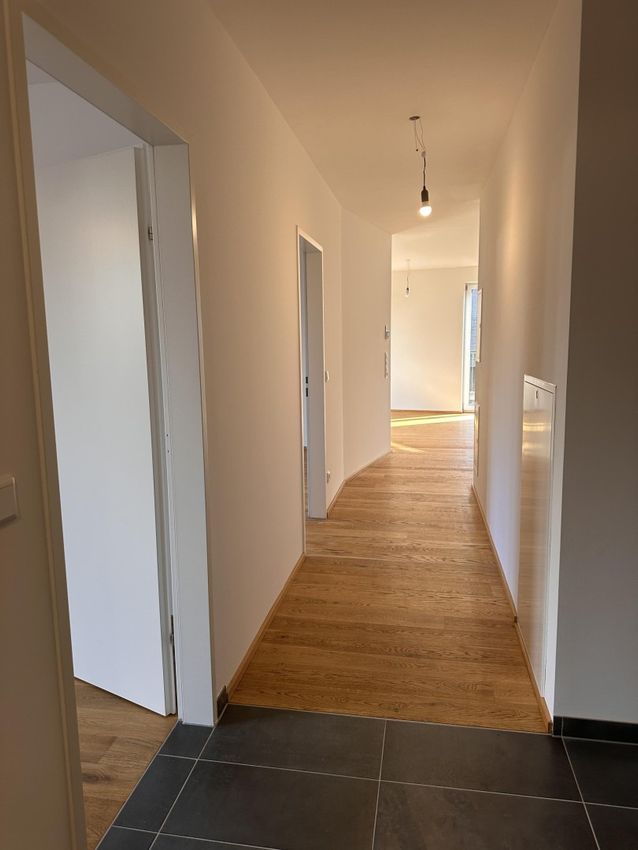 Die Wohnung überzeugt durch eine durchdachte Raumaufteilung: Vom Vorraum aus erreichen Sie das moderne Badezimmer mit ebenerdiger Dusche und WC. Ein praktischer Abstellraum sorgt für zusätzlichen Stauraum.