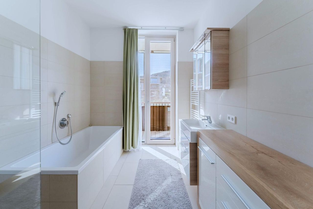 Diese Immobilie überzeugt mit einer durchdachten und hochwertigen Ausstattung, die modernes Wohnen auf hohem Niveau ermöglicht. Edle Parkettböden in Kombination mit einer Fußbodenheizung (Einzelraumsteuerung) sorgen in jedem Raum für angenehmen Wohnkomfort. Eine kontrollierte Wohnraumlüftung unterstützt ein gesundes Raumklima. Hochwertige Holz-Alu-Fenster sowie großzügige Holz-Alu-Terrassentüren unterstreichen die Qualität der Ausführung. Für zusätzliche Sicherheit und Komfort sorgt eine Videogegensprechanlage. Das stilvoll gestaltete Badezimmer ist mit Dusche, Badewanne und Waschbecken ausgestattet! Eine moderne Einbauküche ist bereits vorhanden. Besonders hervorzuheben sind die großzügigen Raumdimensionen mit einer lichten Raumhöhe von ca. 2,80 Meter sowie überhohen Türen mit ca. 2,40 Meter. Abgerundet wird das exklusive Gesamtbild durch das designorientierte Stiegenhaus sowie auf der Terrasse praktische Schiebeläden als Sicht- und Sonnenschutz. 1 komfortabler Tiefgaragenplatz (bestens gelegen - direkt beim Eingang zum Treppenhaus) gehört ebenso zum Repertoire. 2-3 weitere Tiefgaragenplätze wären optional verfügbar!