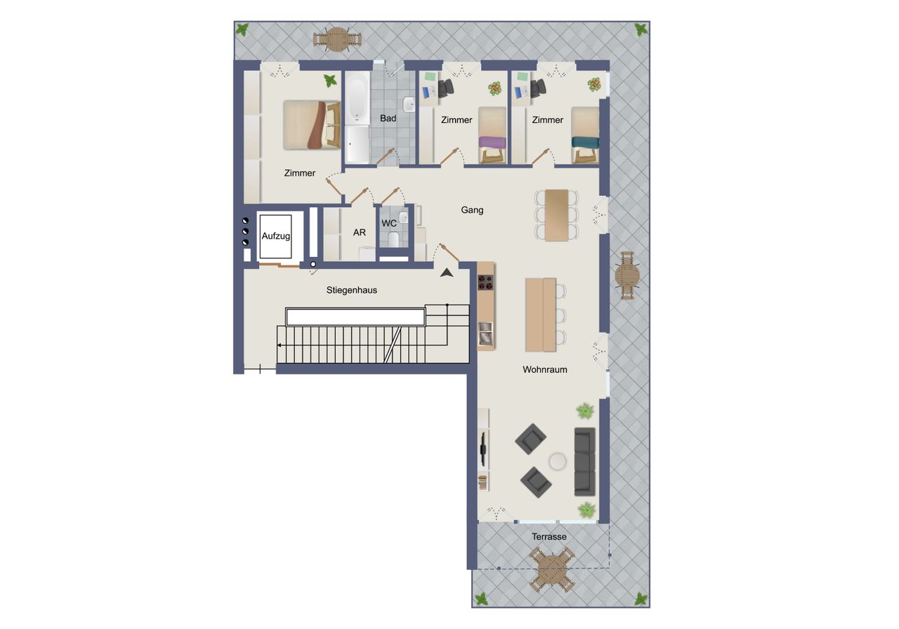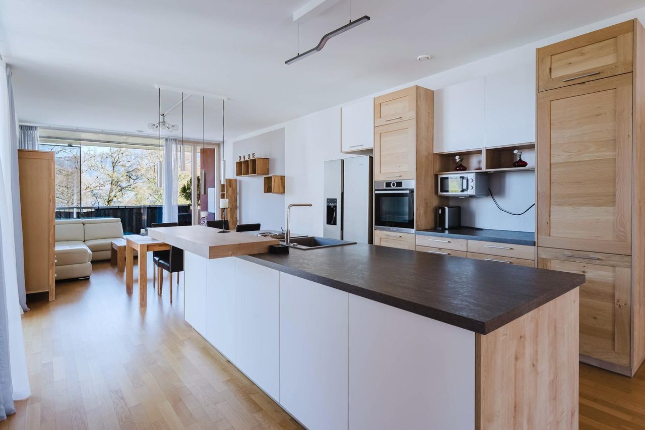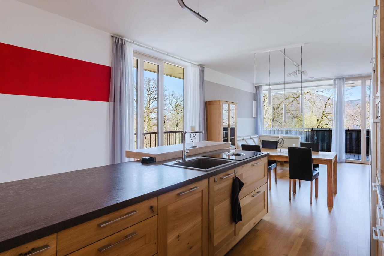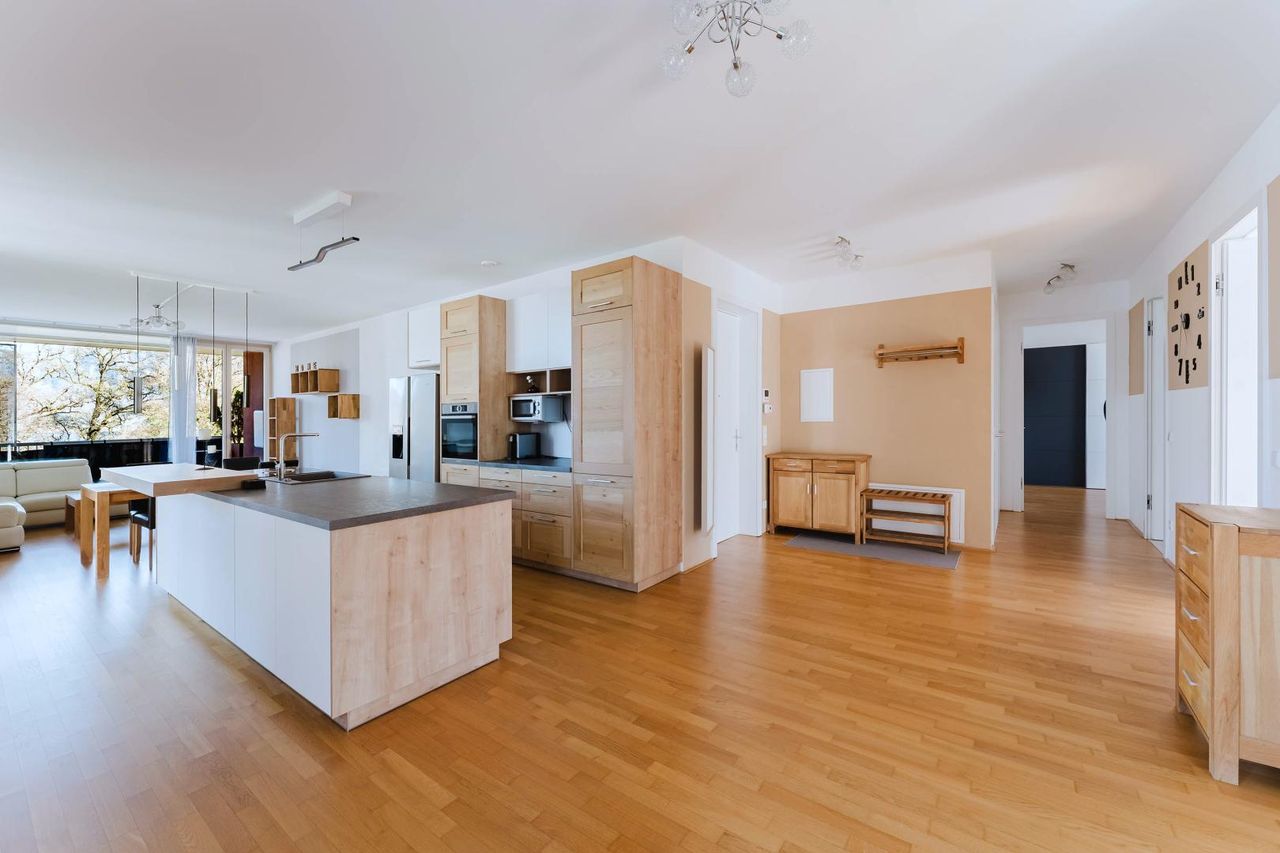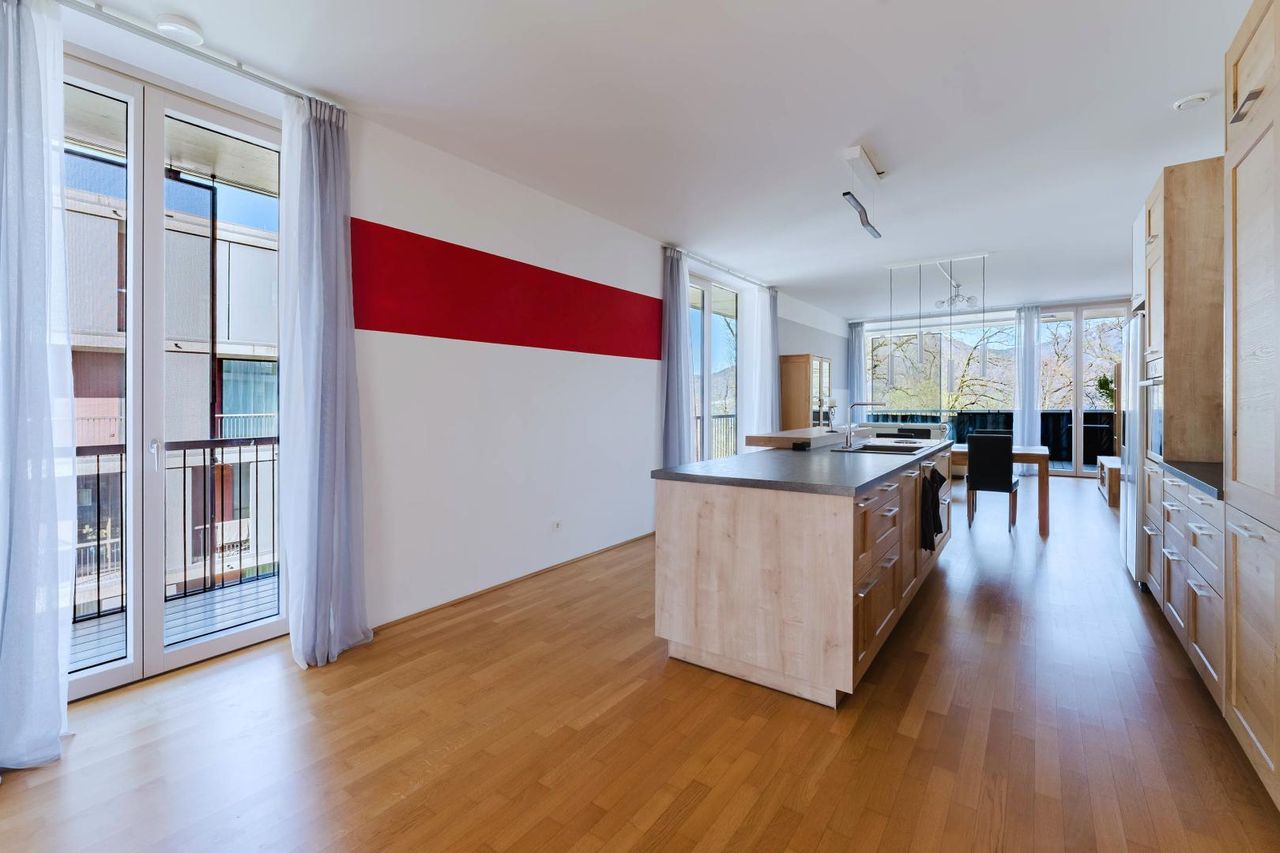 Die Wohnung bietet dadurch ein besonders offenes und komfortables Wohnkonzept mit fließenden Übergängen zwischen Innen- und Außenbereich.