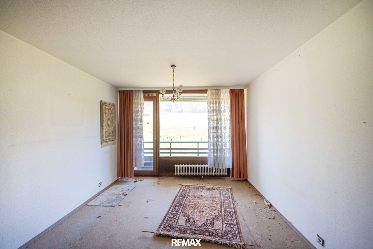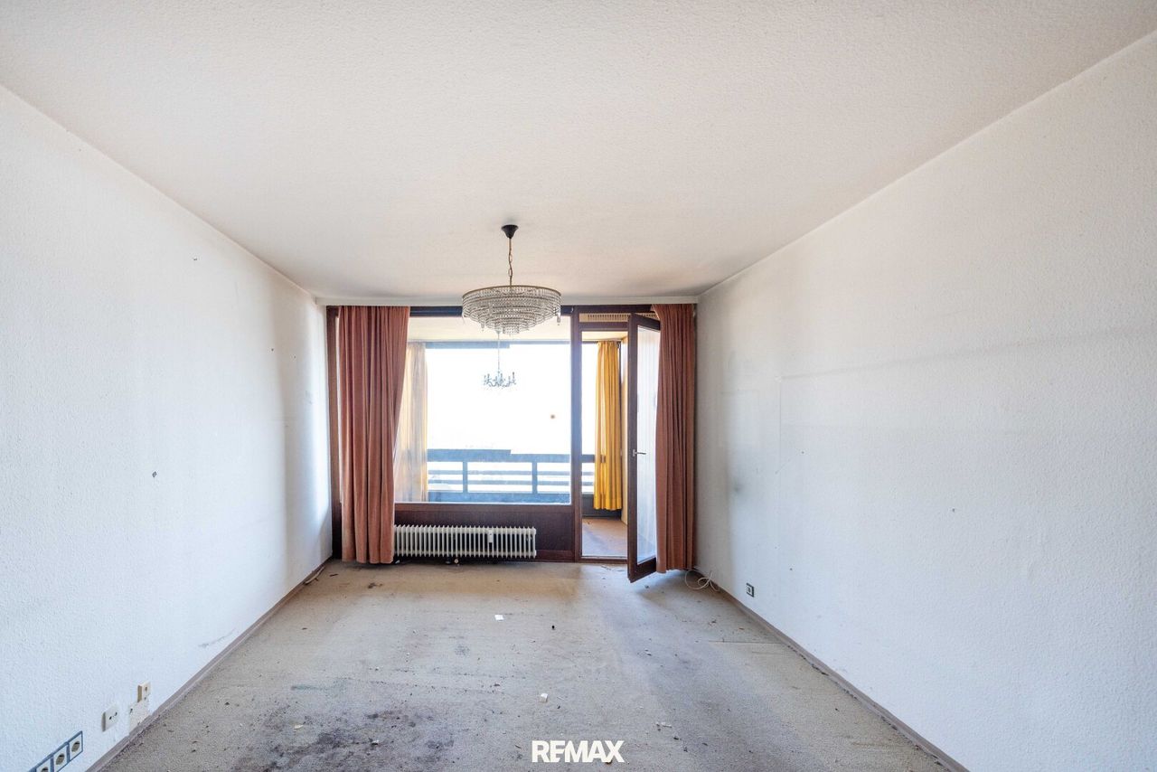 Sämtliche Möbel wurden bereits entfernt, sodass die Räumlichkeiten leer stehen und eine umfassende Sanierung unmittelbar beginnen kann. Das Potenzial dieser Wohnung entfaltet sich besonders durch die gute Raumaufteilung. Das Herzstück bildet das helle Wohnzimmer mit direktem Zugang zur verglasten Loggia, von der aus man den Blick weit über den See schweifen lassen kann. Das Schlafzimmer liegt ruhig an der Rückseite des Gebäudes und verfügt über eine zweite Loggia mit Blick ins Grüne.