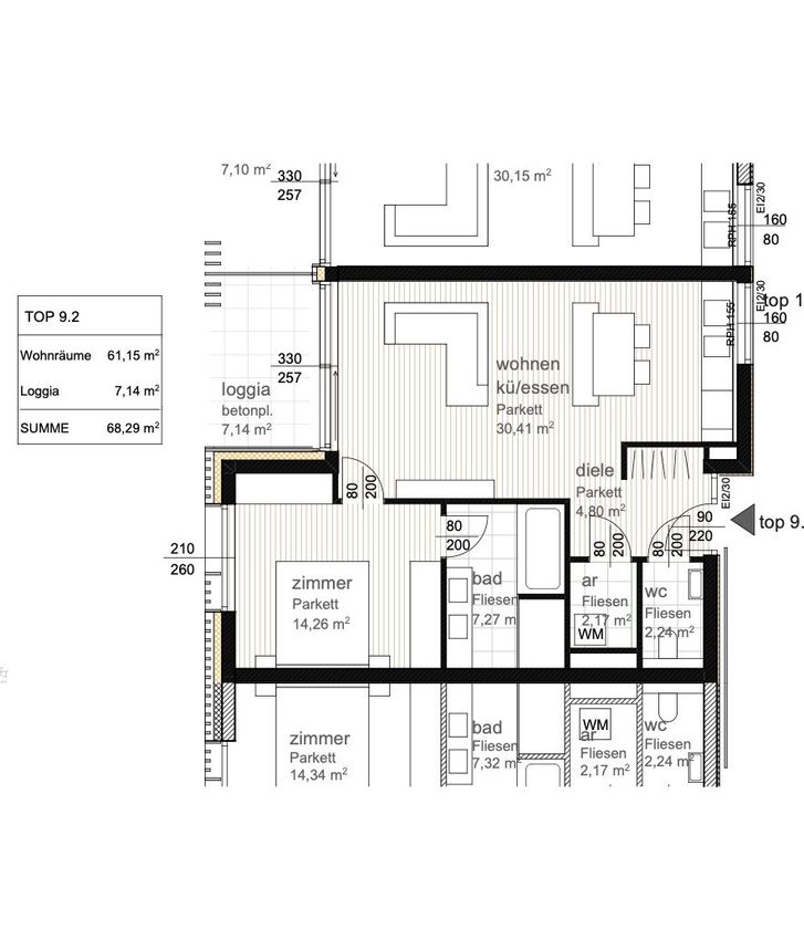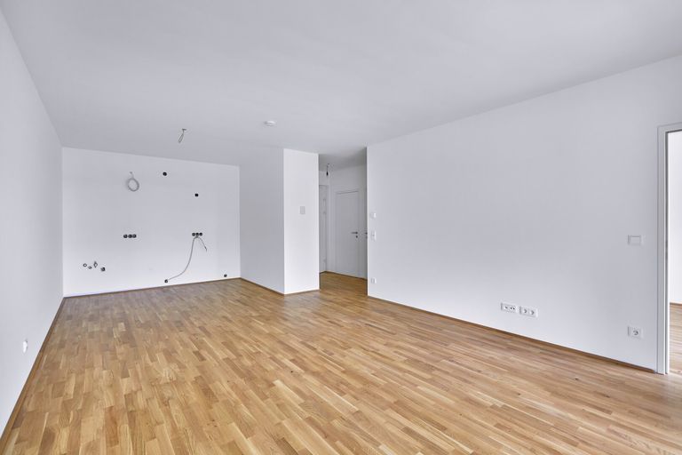 Vom zentralen Aufschließungsgang aus gelangen Sie in das separate WC, den praktischen Abstellraum sowie in den offenen Wohn-, Koch- und Essbereich. Dieser bildet das Herzstück der Wohnung und lädt mit seiner großzügigen Gestaltung zum Wohlfühlen und Verweilen ein.