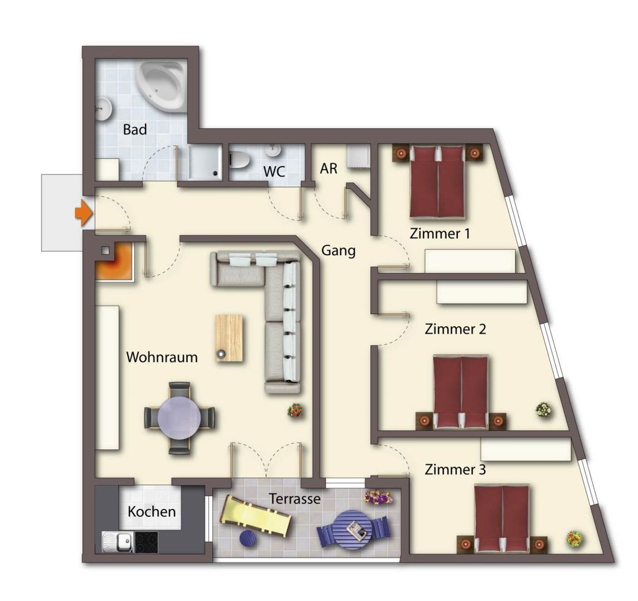 Die Wohnung befindet sich in einem gepflegten Zustand und kann nach Ihren persönlichen Vorstellungen gestaltet und eingerichtet werden.