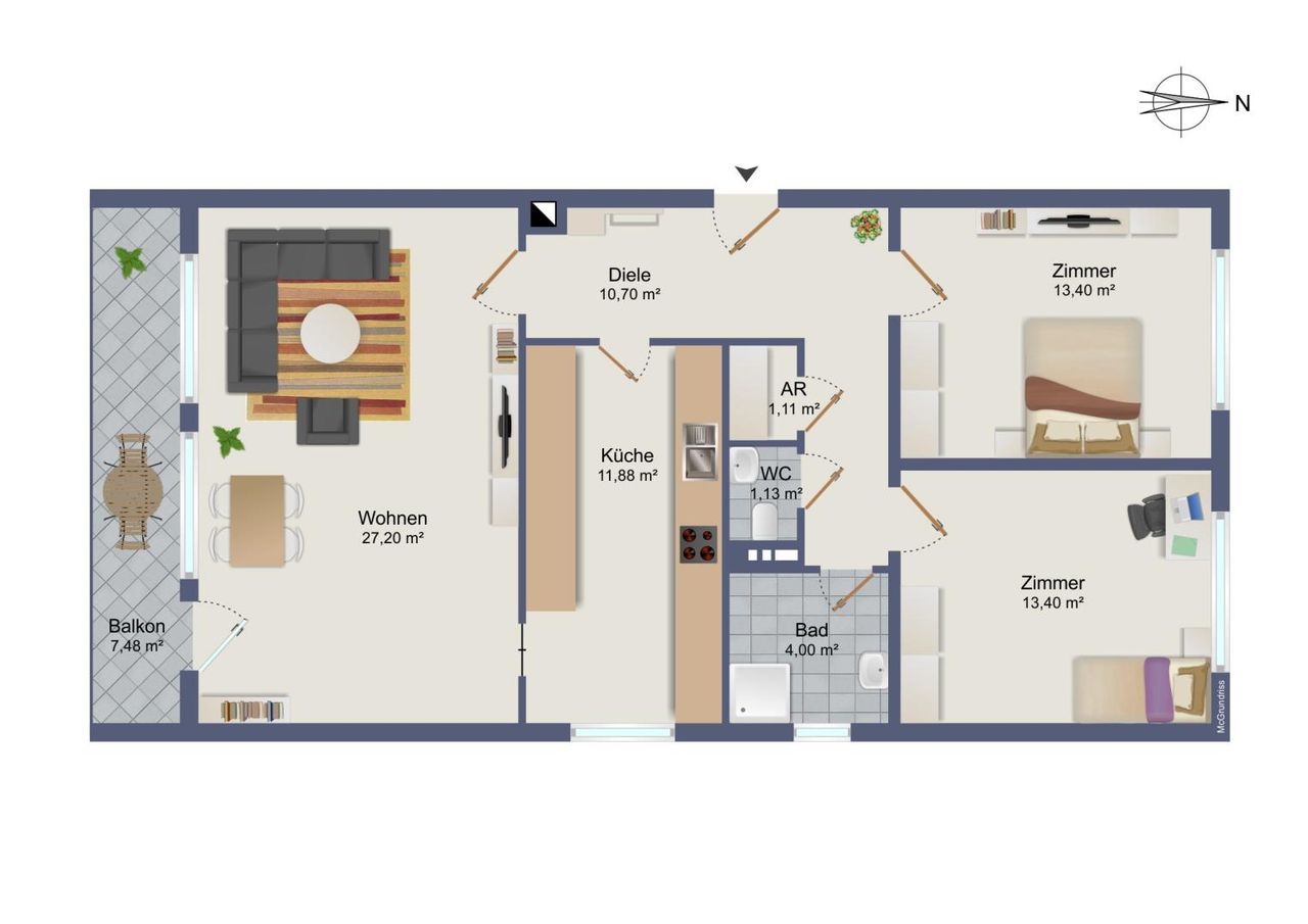 Citynah: Sonnige 3-Zimmer-Wohnung mit Loggia Top-Anbindung
